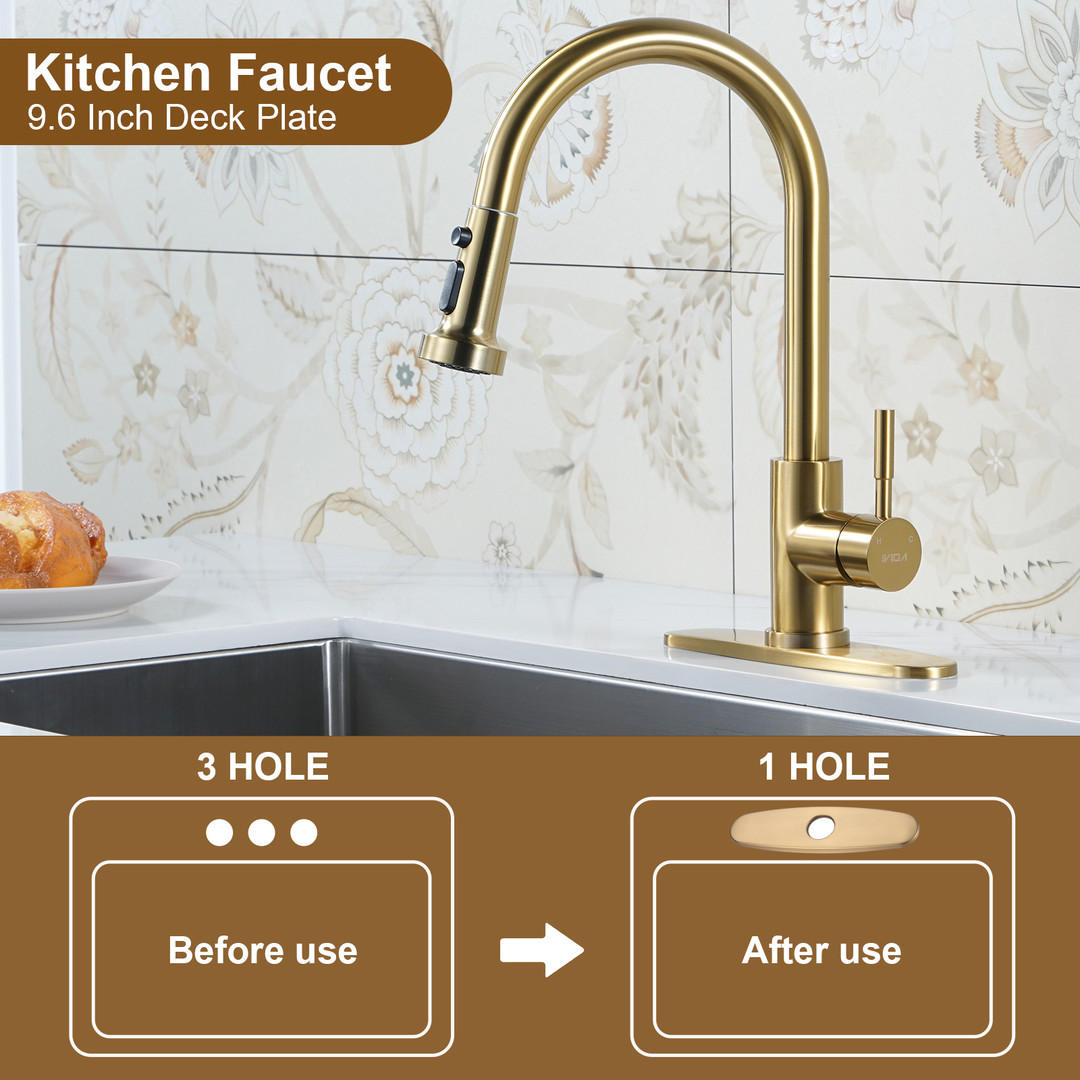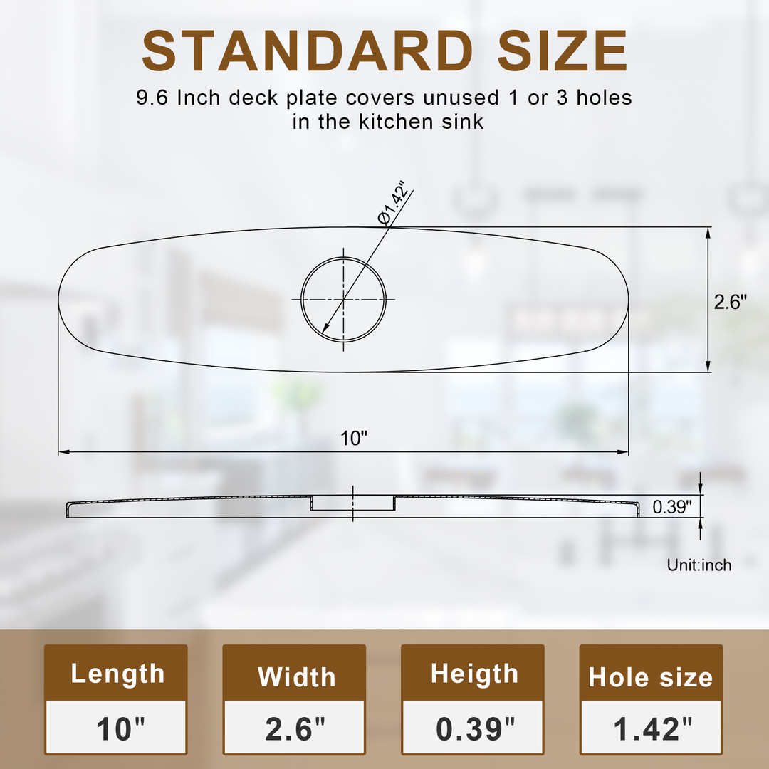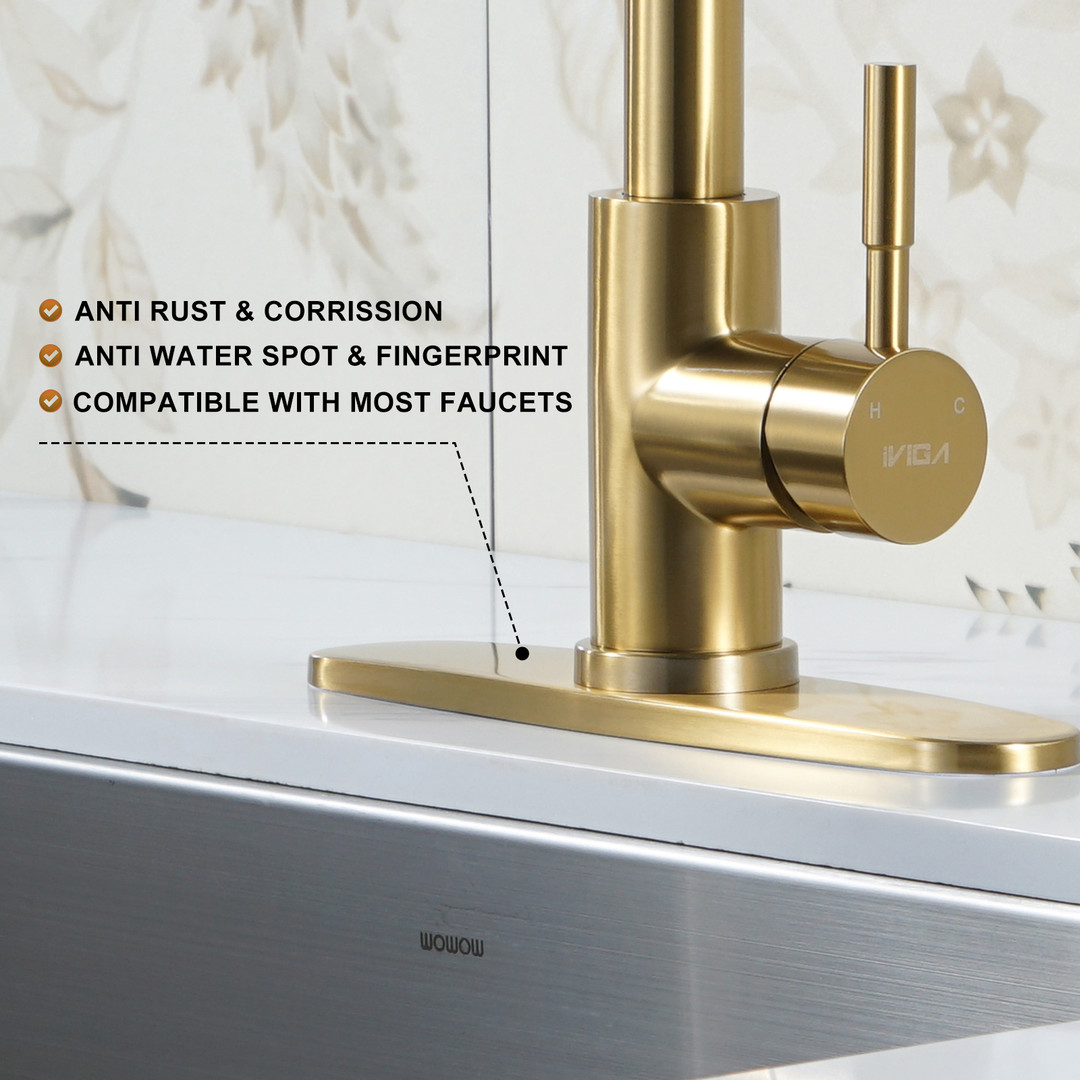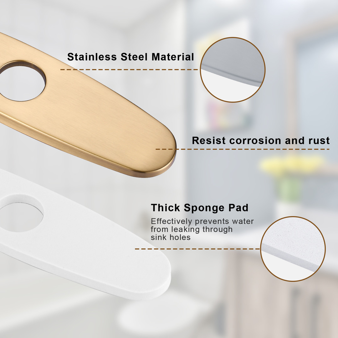 ALEASHA faucet deckplate effectively hides any excess holes on the basin, fits for the 1-hole or 3-hole sink, creating a cleaner and more organized sink area. It can perfectly match the sink, resulting in a unified overall design. The deckplate is typically made of stainless steel to ensure durability and a long-lasting appearance. It helps reduce the accumulation of dust, water stains, and other dirt around the faucet, making cleaning easier. Additionally, it can seamlessly integrate with various decorative styles.