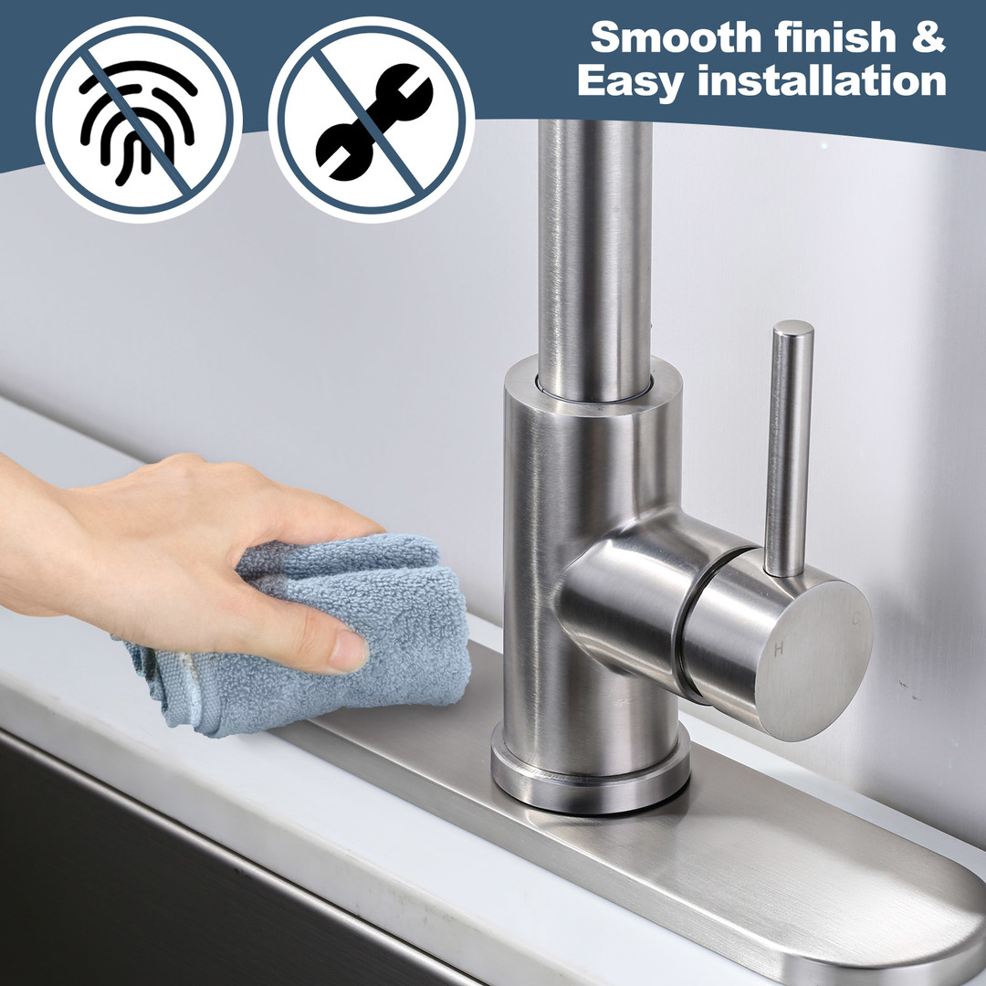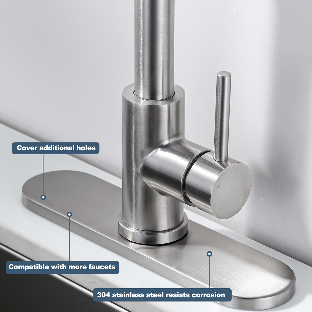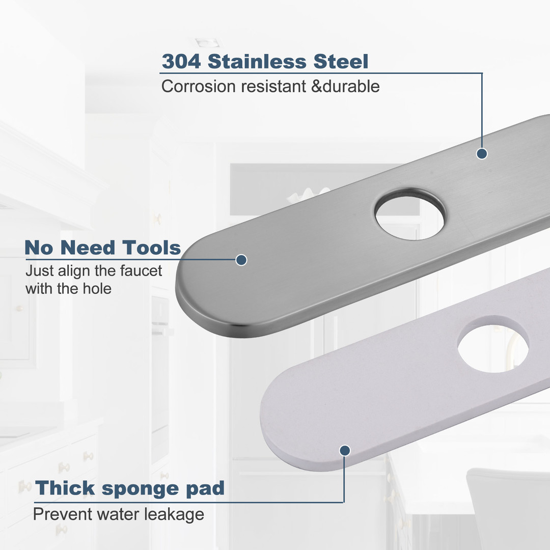 ALEASHA faucet deck plate effectively hides any excess holes on the basin, fits for the 1-hole or 3-hole sink, creating a cleaner and more organized sink area. It can perfectly match the sink, resulting in a unified overall design. The deck plate is typically made of stainless steel to ensure durability and a long-lasting appearance. It helps reduce the accumulation of dust, water stains and other dirt around the faucet, making cleaning easier. Additionally, it can seamlessly integrate with various decorative styles.