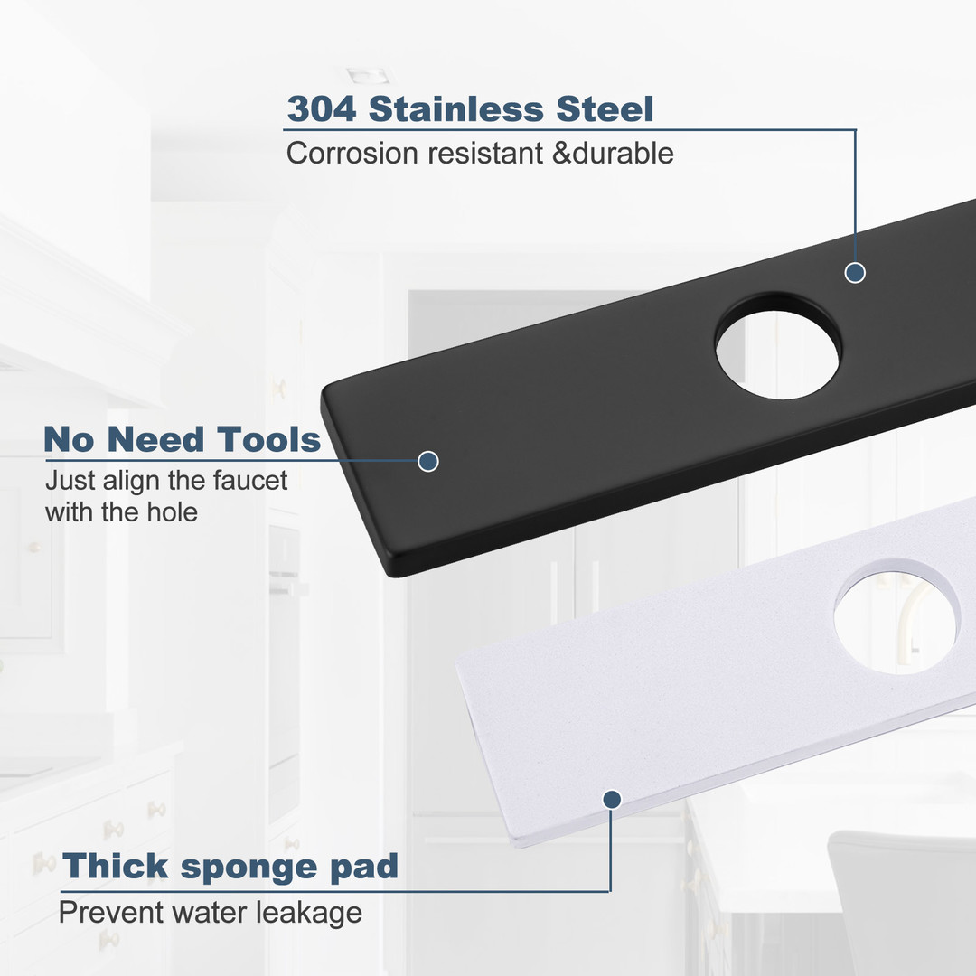 Our faucet deck plate boasts an ingenious design, making the installation process incredibly convenient. Simply align the faucet with the pre-set holes on the deck plate and the installation can be quickly completed. This deck plate not only simplifies the installation but also provides additional support to the faucet, ensuring greater stability and reducing the risk of wobbling or damage. Choose our faucet deck plate for a more secure installation and greater peace of mind in usage.