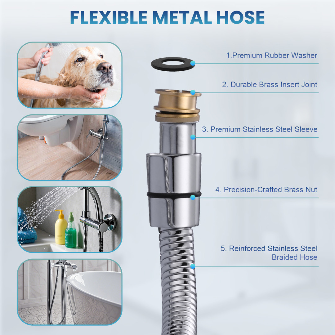 Solve clogging problems with the IVIGA 1/2 in. NPT x 118 in. Handheld Shower Hose. The hose is made of high-quality SUS 304 stainless steel, which is explosion-proof, rust-resistant and extremely flexible. The nylon braided tubing is designed to prevent kinks and breaks, ensuring product longevity. The shower hose is compatible with most showerheads, tub faucets and bidet jets and can meet your needs.