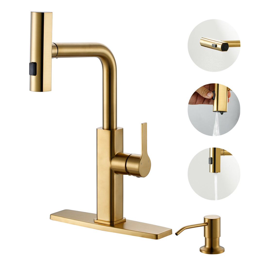 This Sensor Single Handle Pull Down Kitchen Faucet combines technology and practicality for a smarter and more convenient kitchen experience. Built-in battery-powered sensor allows for hands-free use. 3 water dispensing modes (Stream, Spray, Sweep) are switched at the touch of a button. Its durable stainless steel construction and water-saving design ensure long-lasting performance. This faucet is easy to install and is also a great decorative piece to enhance the style of your kitchen.