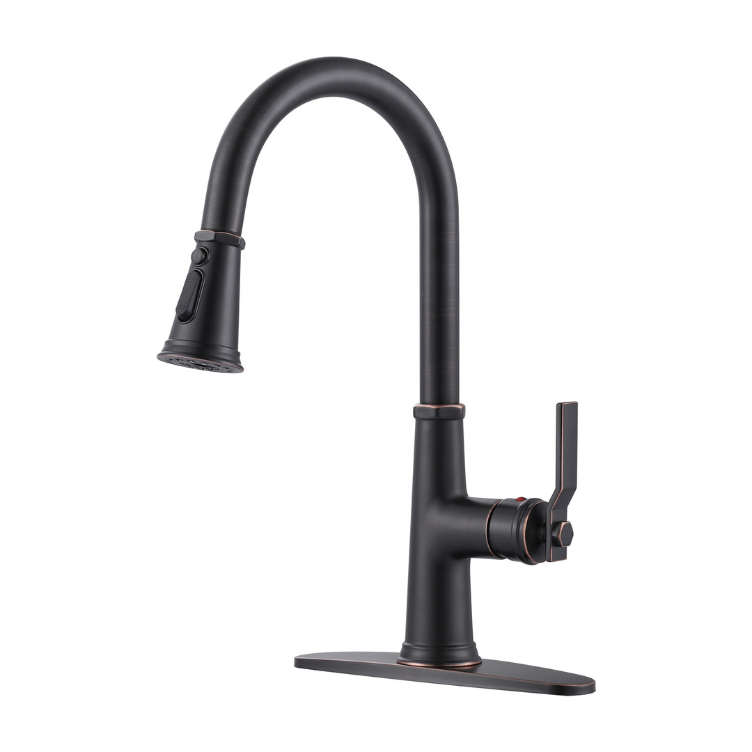 The unique point of this pull down faucet is that it comes with an industrial style full of character. Designed with the shape of a nut at the handle and spray head, this faucet will give you a great experience if you like this style. The 3-function spray head can be a good solution for various cleaning tasks in the kitchen.
