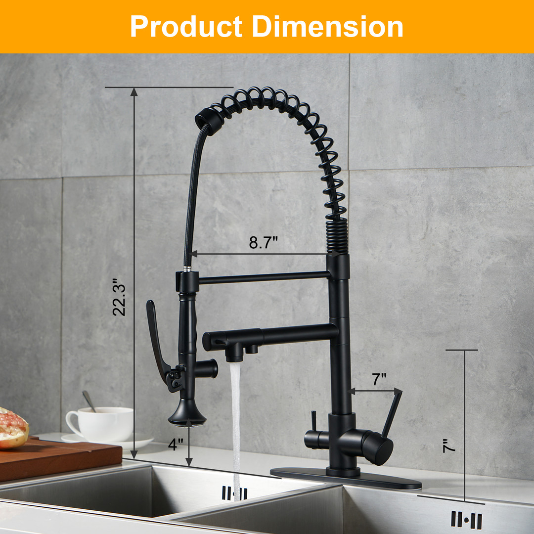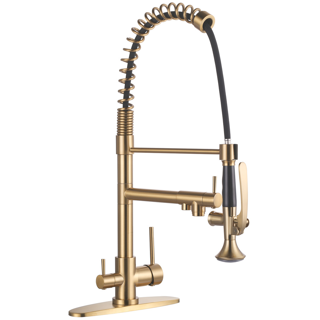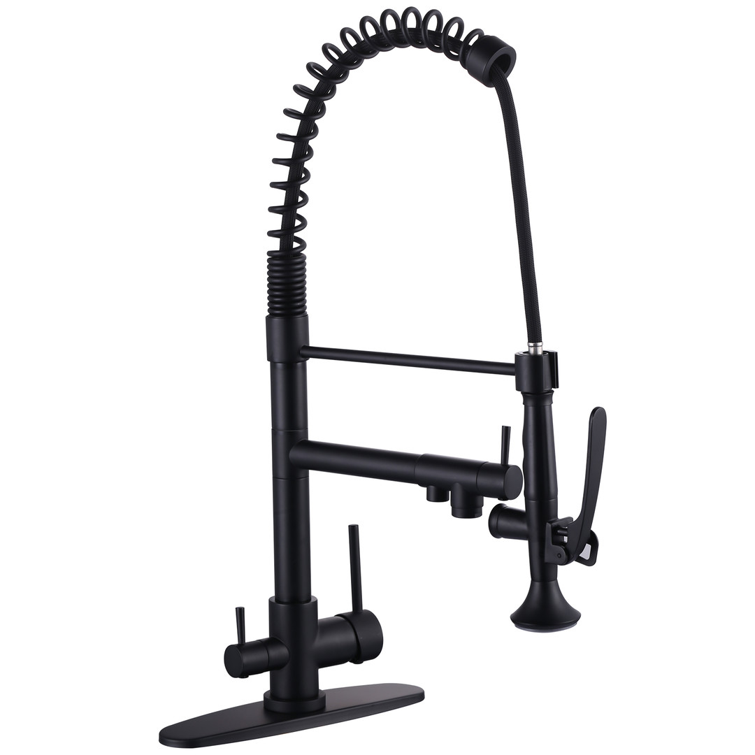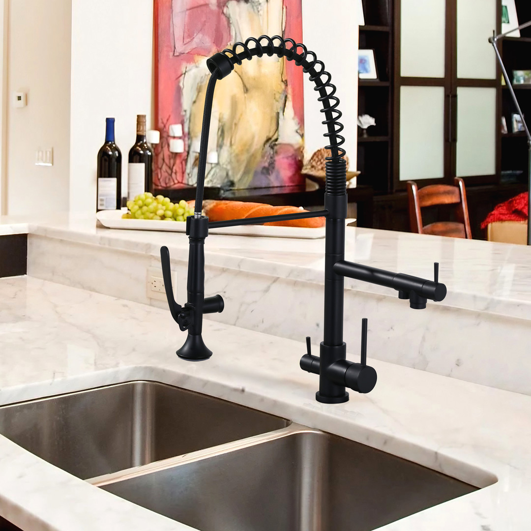 Upgrade your commercial kitchen with ALEASHA 3-in-1 Pull-Down Faucet. The high-arc spout provides clearance for large pots and trays, while the pull-down sprayer ensures precise rinsing. Made from premium brass, it’s built for demanding kitchens. 3 handles control spray, stream, and drinking water, boosting efficiency. Ideal for restaurants, cafeterias, or any professional kitchen, this faucet delivers versatile, precise, and reliable performance.