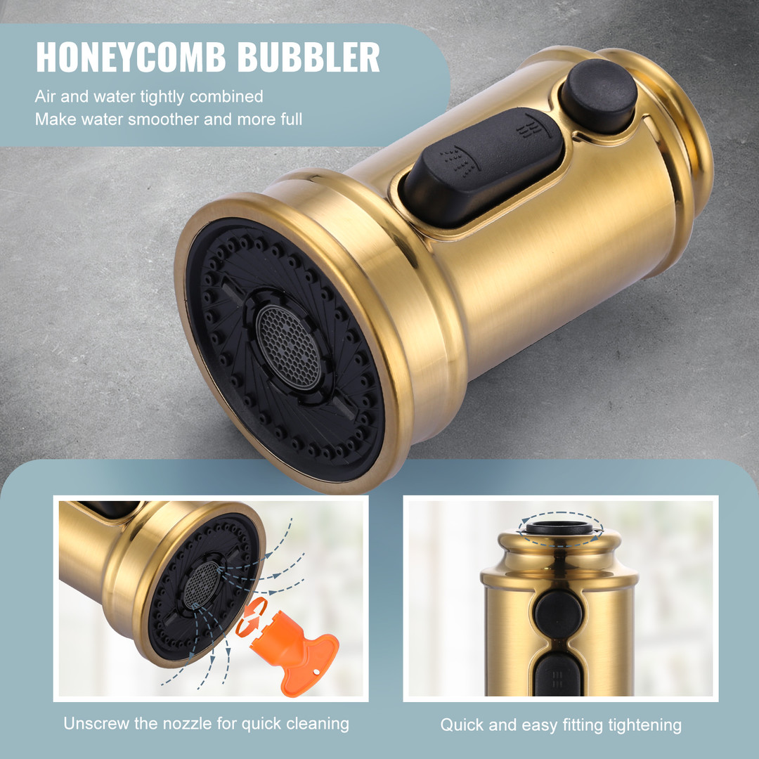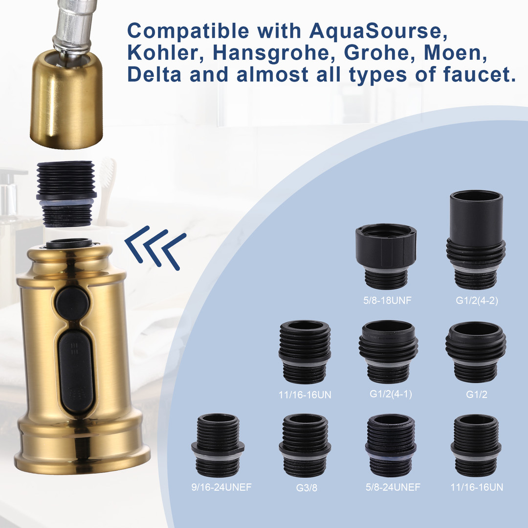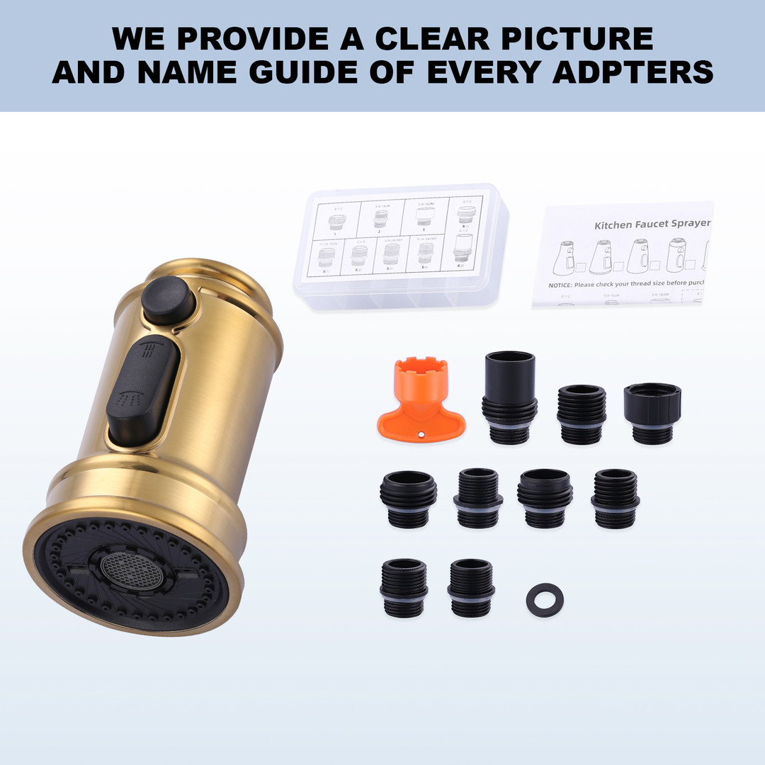Upgrade your kitchen faucet with the 3-Function Sprayer Head Replacement. Featuring stream, spray, and AquaBlade modes, this versatile sprayer allows you to effortlessly switch between water flows with a simple press of a button. Constructed from durable ABS material, the sprayer features a honeycomb aerator that optimizes water flow and minimizes splashing. It’s compatible with most major faucet brands, providing a universal solution for your kitchen needs. Installation is simple with the included 9-adapter kit, allowing you to easily replace your old spray head without professional help. Ideal for replacing clogged or damaged faucet spray heads, this sprayer offers a cost-effective solution without the need to purchase an entirely new faucet. Whether you’re rinsing dishes, washing vegetables, or tackling other kitchen tasks, this sprayer is an essential upgrade to enhance your kitchen’s functionality.