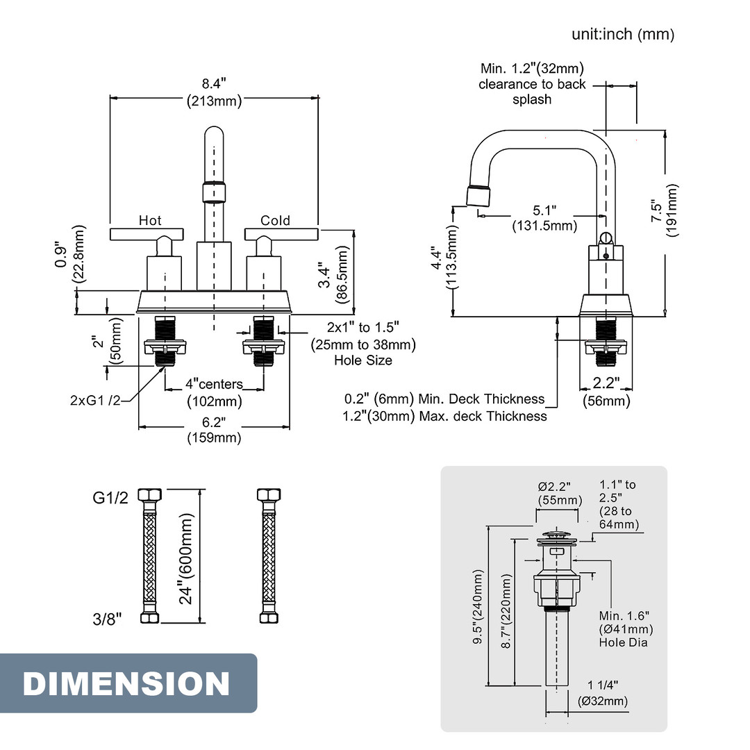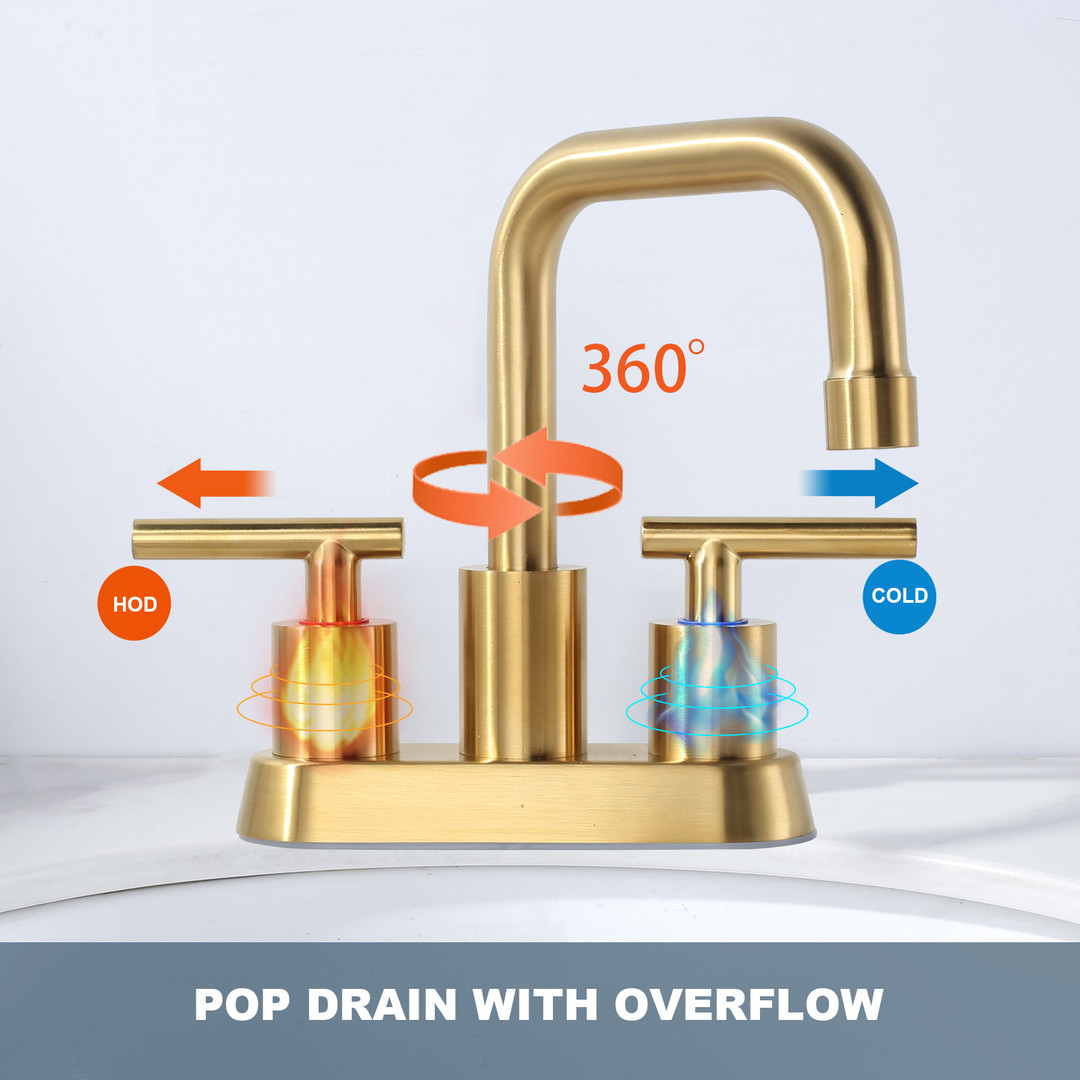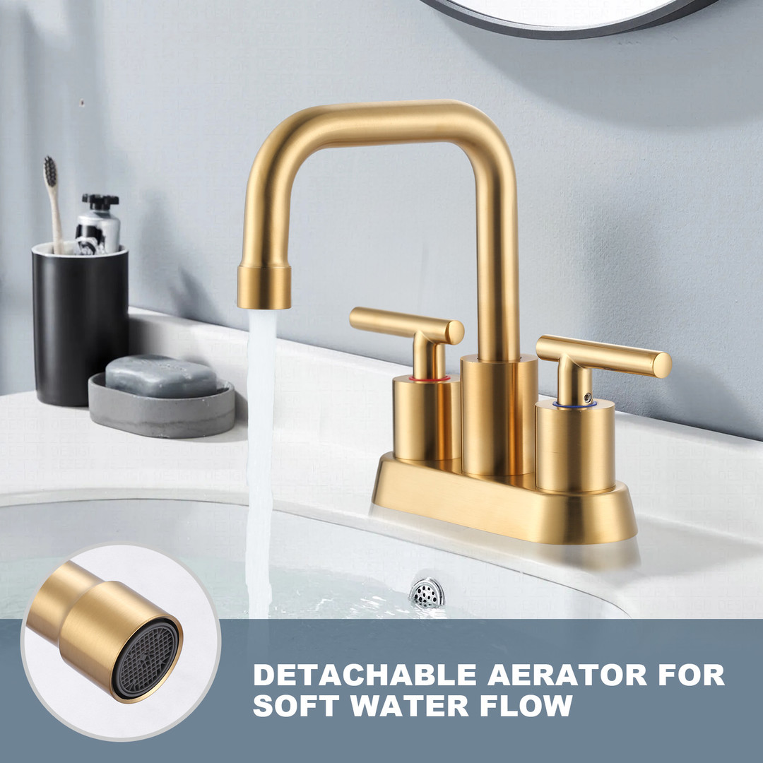 ALEASHA 4-inch Centre Bathroom Faucet combines practicality with aesthetic design for the modern home bathroom. Made of stainless steel to ensure long-lasting shine. The two-handle design provides precise control over temperature and flow for a comfortable and convenient water experience. The faucet comes with a pop-up drain and supply hose, making it easy to make all the connections without the need to purchase additional fittings, saving you time and effort.