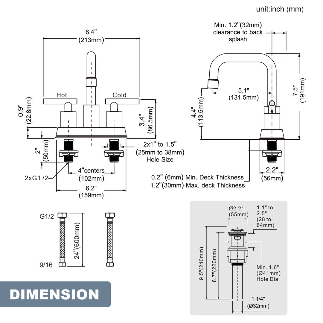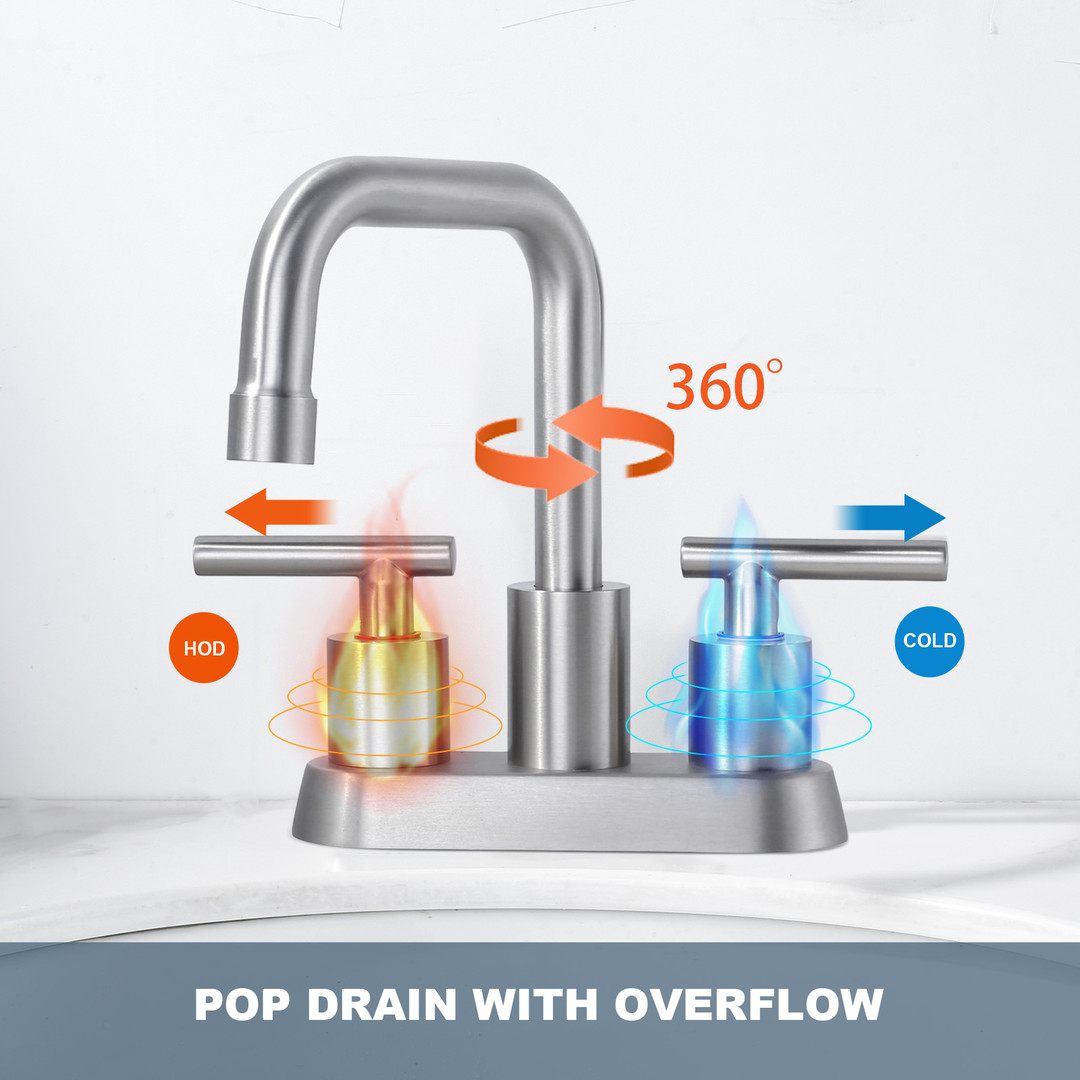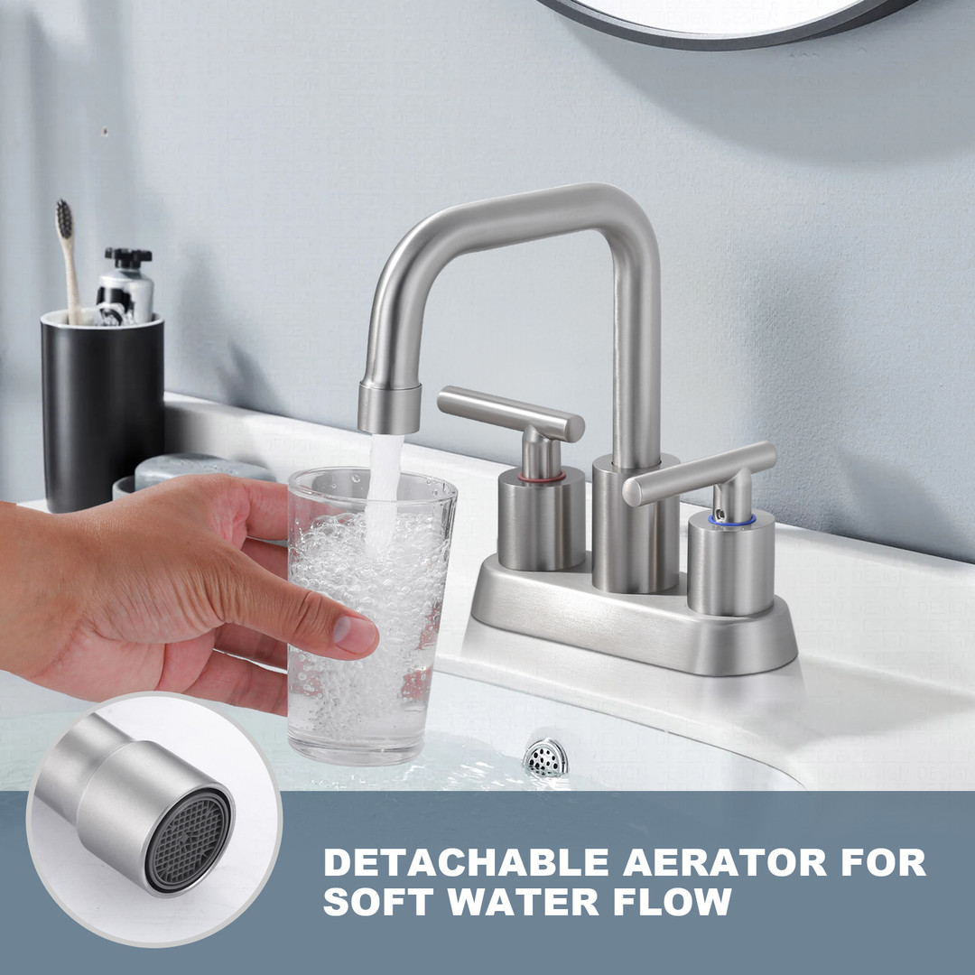 ALEASHA 4 in. centre bathroom faucet combines practicality with aesthetic design for the modern home bathroom. Made of stainless steel to ensure long-lasting shine. The 2-handle design provides precise control over temperature and flow for a comfortable and convenient water experience. The faucet comes with a pop-up drain and supply hose, making it easy to make all the connections without the need to purchase additional fittings, saving you time and effort.