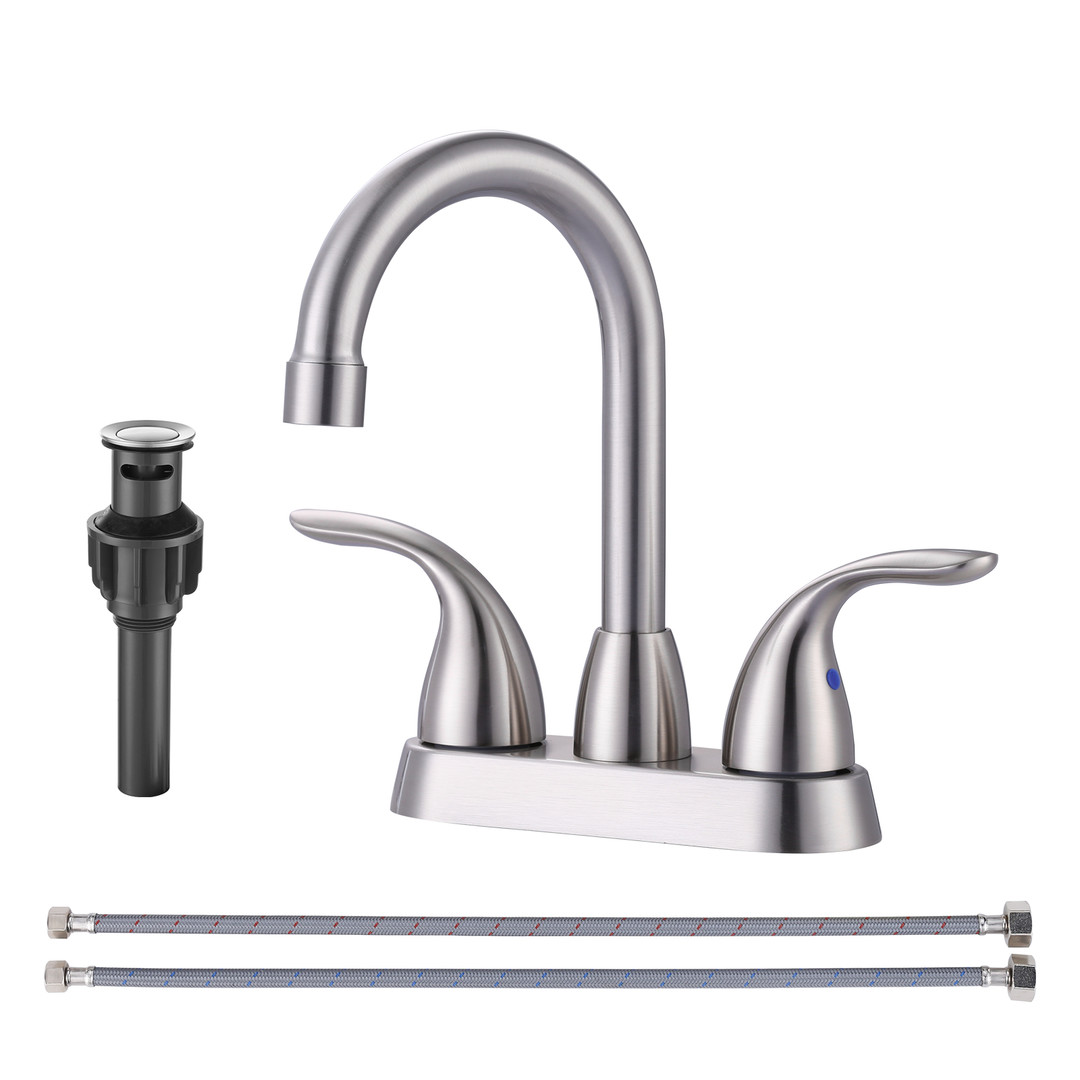 More and more people are seeking both charm and functionality in their bathroom faucet, if you are one of them, our dual-handle bathroom faucet will be perfect for you. Craft from durable zinc alloy, this faucet resists rust and corrosion, ensuring a long-lasting performance. The included pop-up drain with overflow offers easy operation,allowing you to drain water efficiently and quietly when conserving water. With the double handles, achieving precise temperature control is effortless, making your daily tasks more convenient.