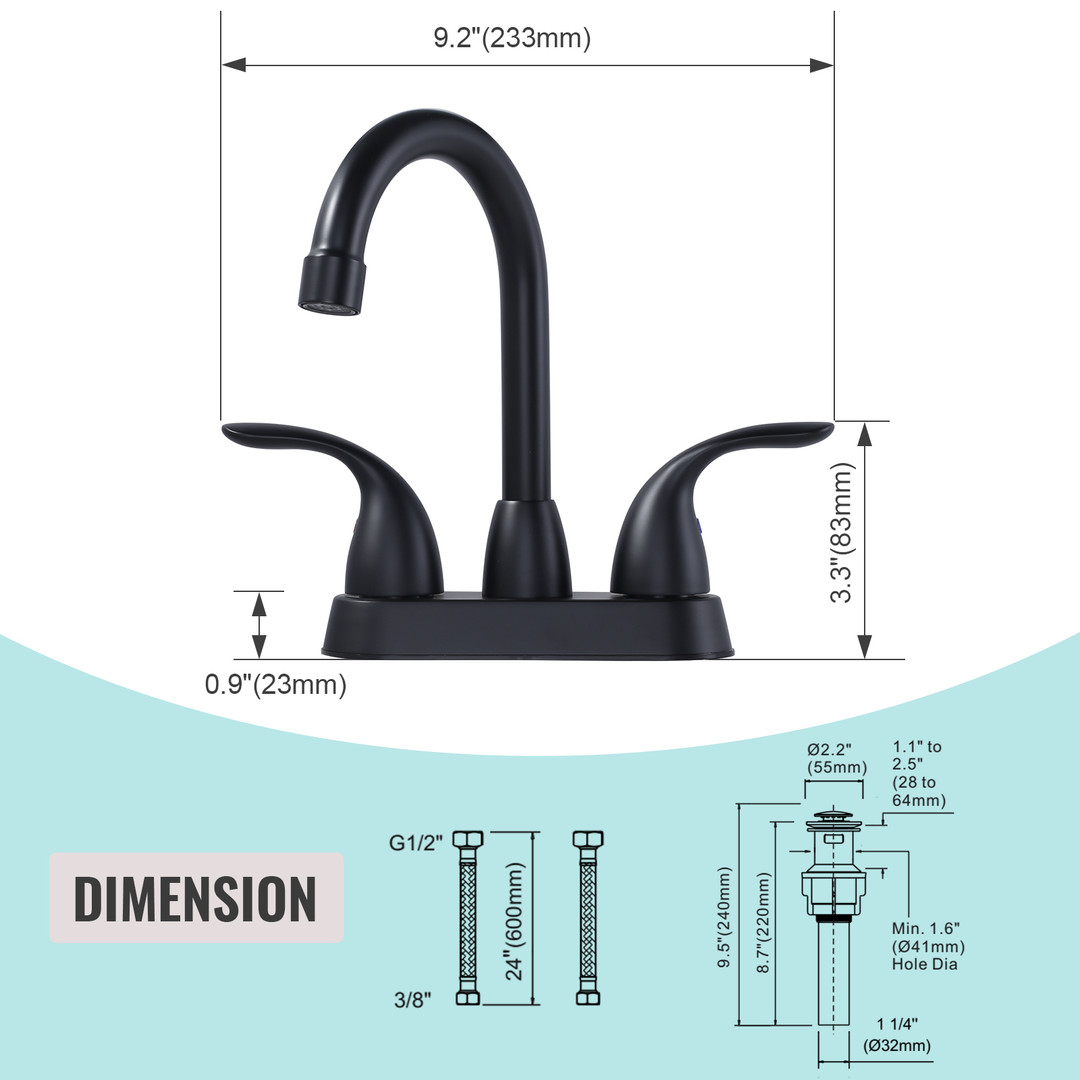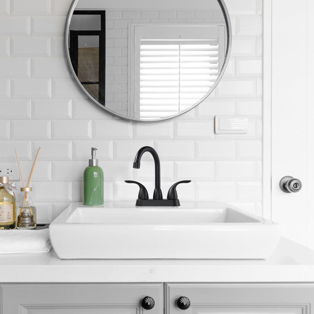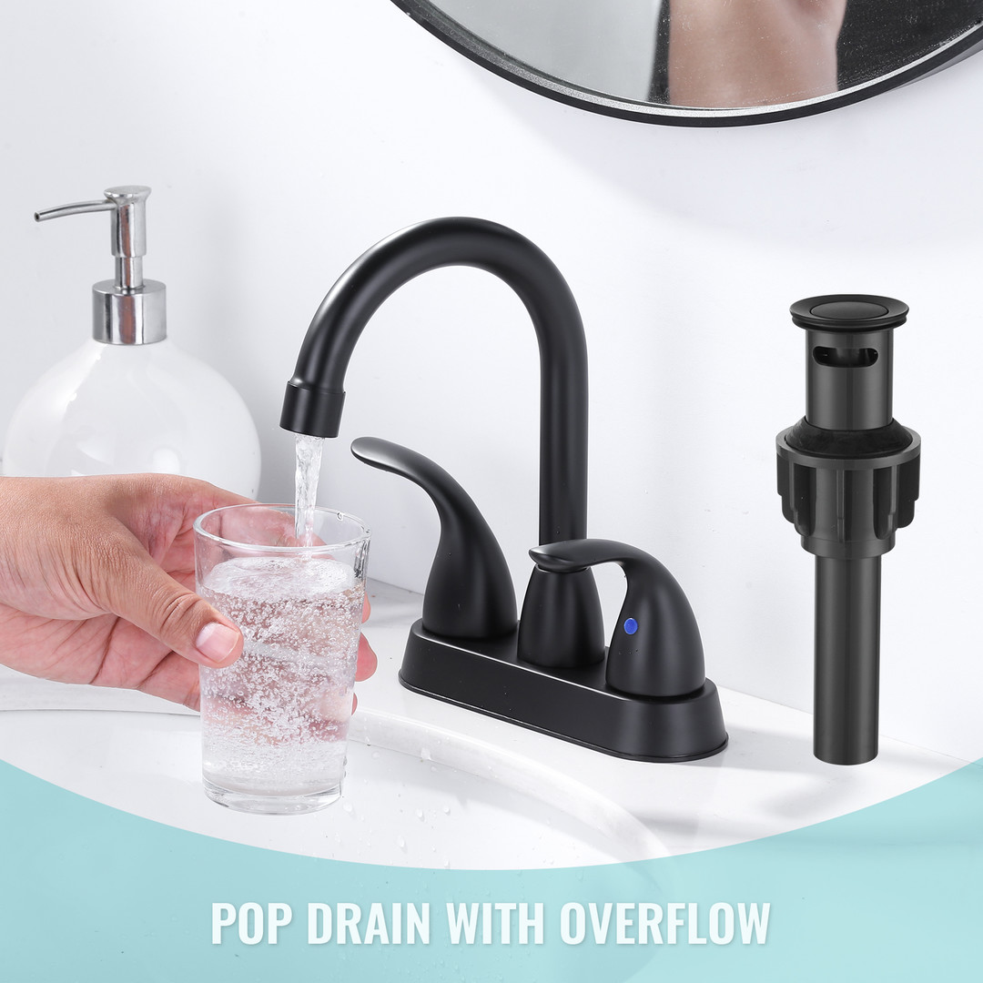 6 reviews for 4 in. Centerset Double Handle Bathroom Faucet with Pop-Up Drain in Matte Black