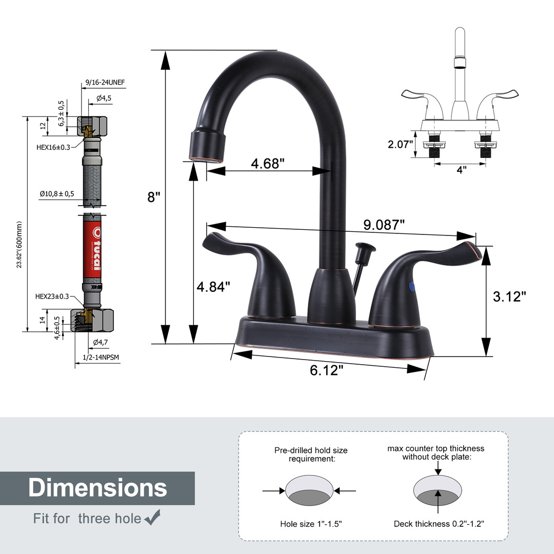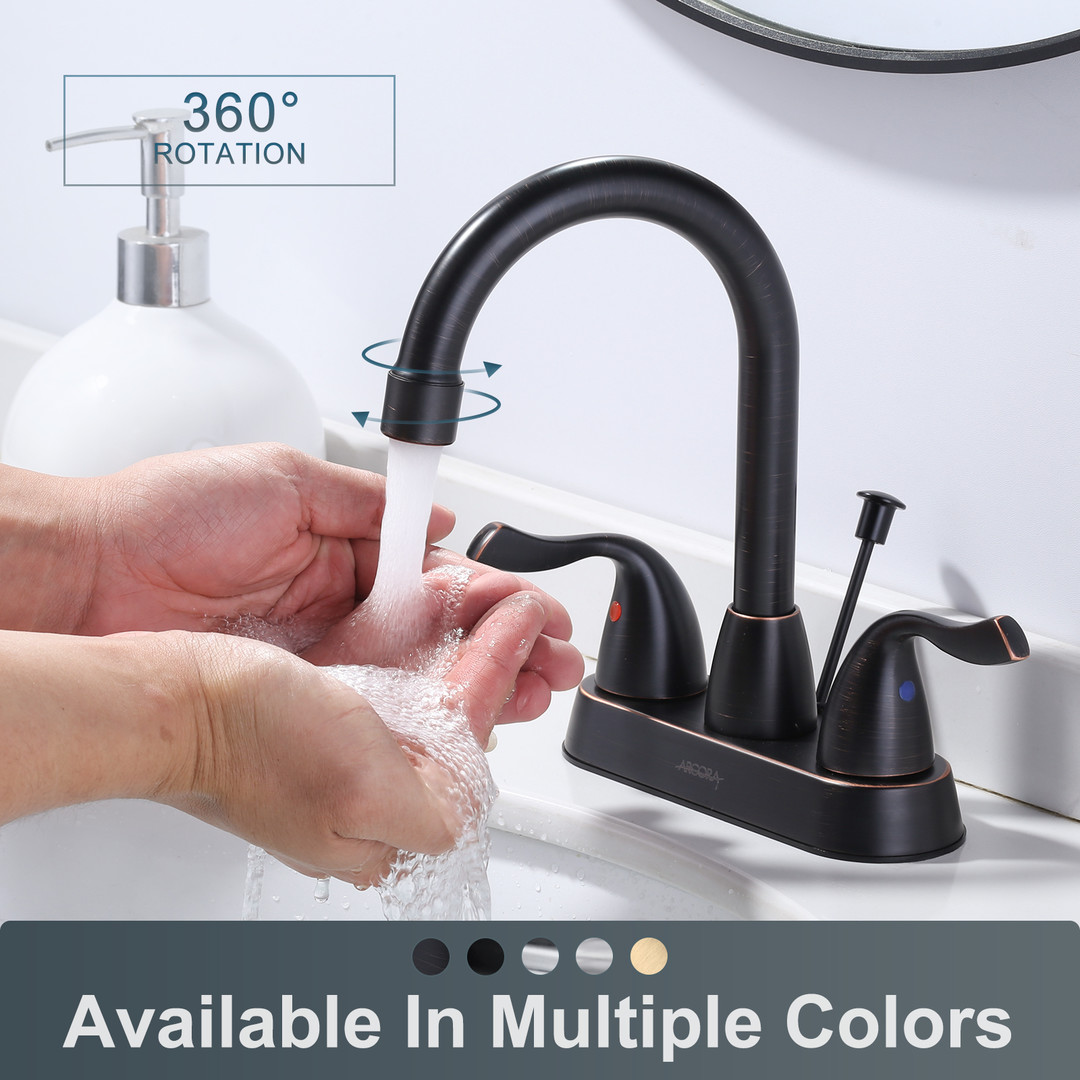 Crafted from premium metal, this faucet boasts exceptional performance. It features a center-set double-hole installation for excellent integration. The elegant and rounded appearance complements most bathroom styles. The dual-handle design, along with a lift rod drain assembly, offers both functionality and aesthetics.