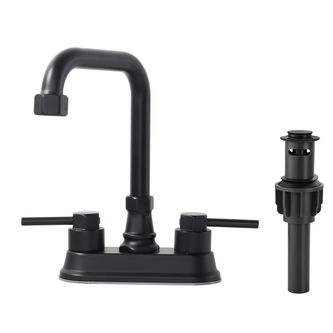 This 4 in. centerset bathroom faucet is a compact and stylish solution for any 3-hole sink. Featuring a 360 swivel high-arc spout and dual handle control, it brings daily comfort and modern design to your bathroom. The detachable aerator ensures soft, splash-free flow while helping save water. Its solid metal build with corrosion-resistant finish guarantees long-term use. This faucet also includes a matching pop-up drain with overflow compatibility and all necessary installation parts, making it ideal for quick renovations or replacements.