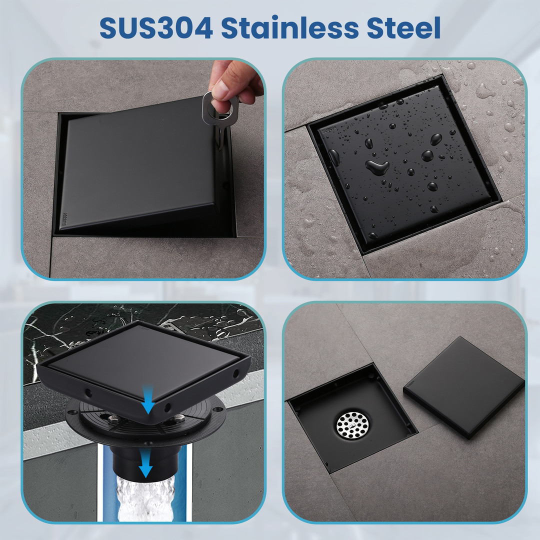 Aleasha shower drain can enhance the drainage efficiency of your bathroom while adding a touch of elegance. Its neat edge design fits snugly with the floor. The embedded tile design allows the drain to be hidden, maintaining the seamless look of the bathroom floor. The elegant anti-slip surface makes it an optimal choice for bathroom drainage.
