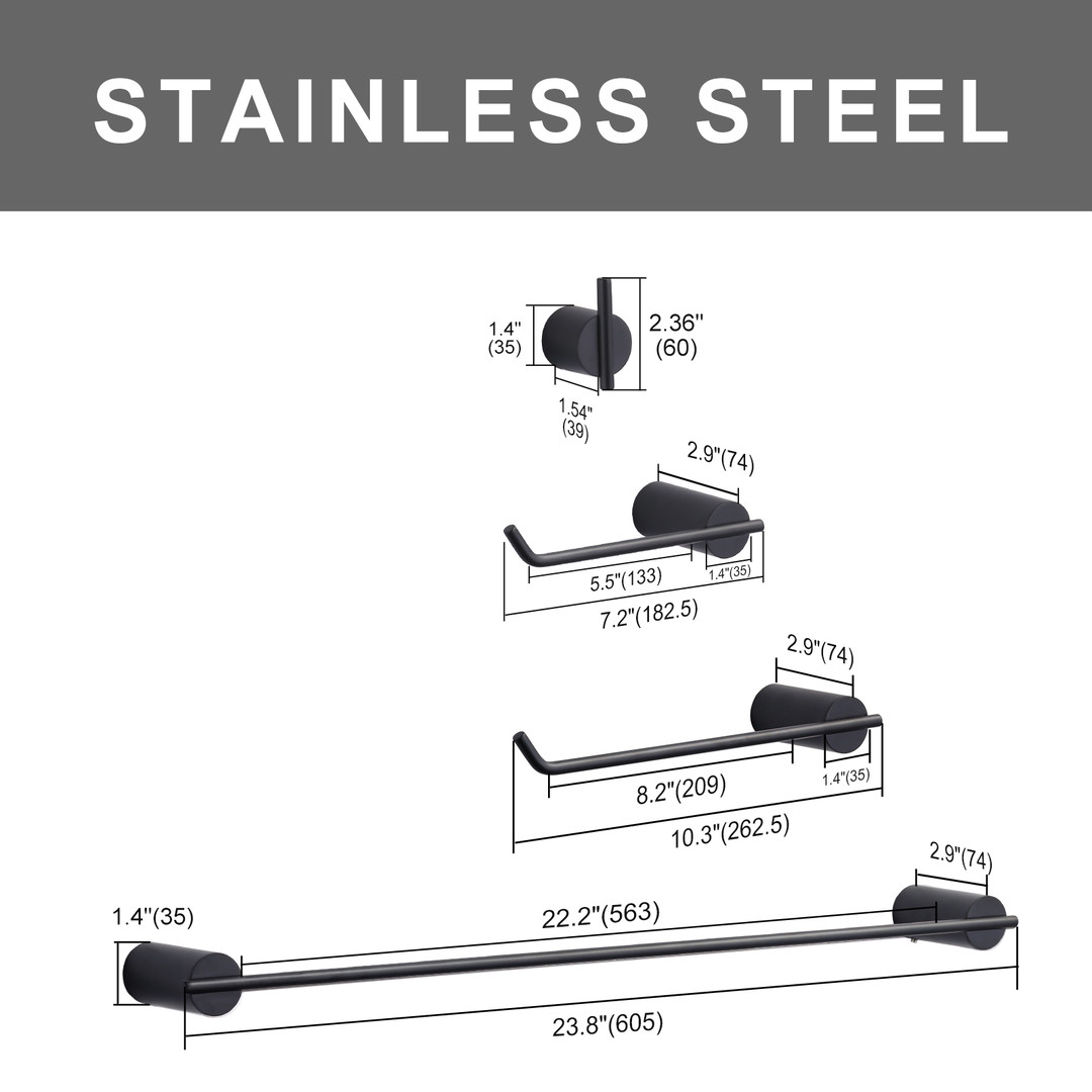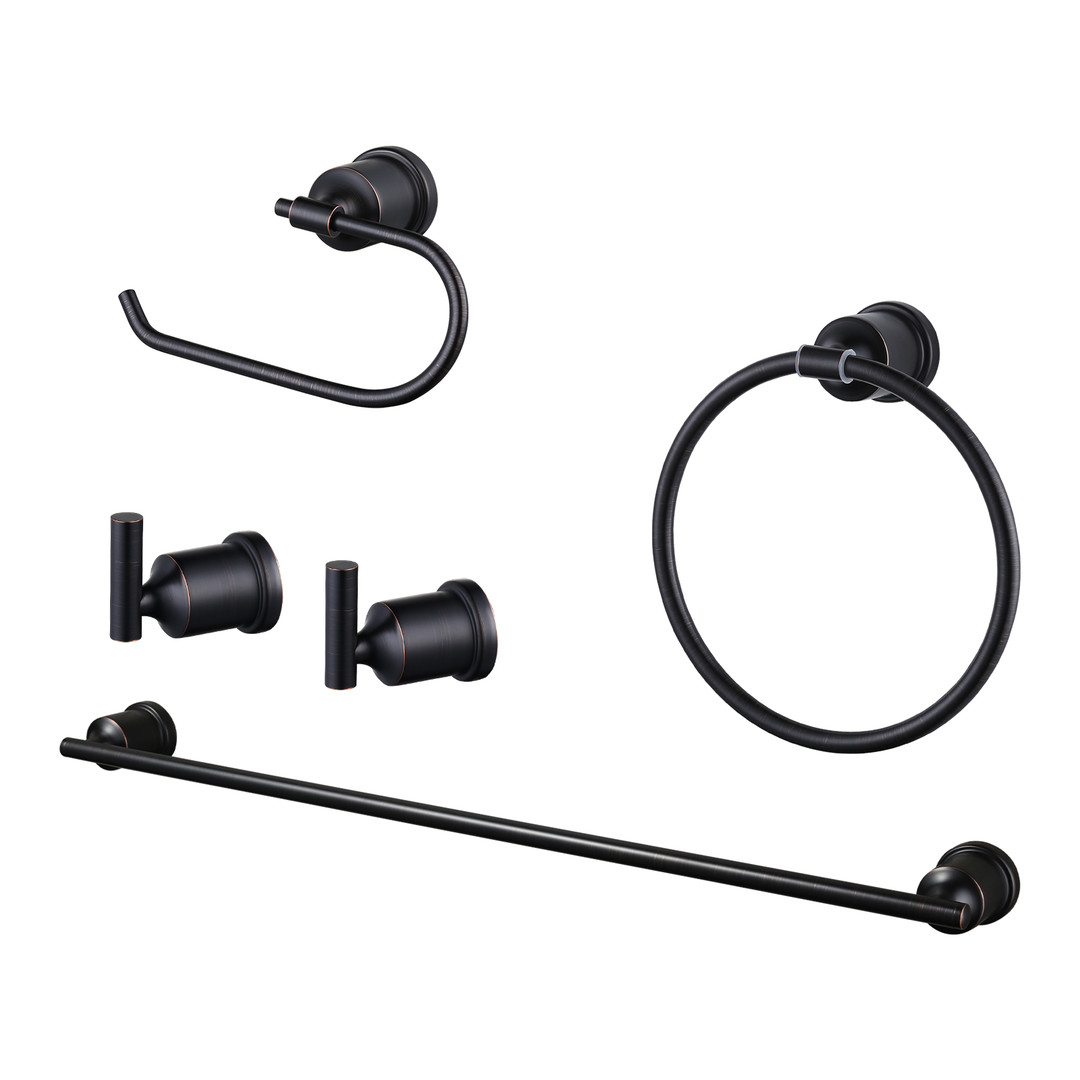 Upgrade your bathroom with the ALEASHA 5-piece hardware set. This bathroom hardware set is made of durable stainless steel, which can withstand daily use and resist corrosion. The different types of hardware allow you to hang items efficiently, saving space. The timeless design, with simple lines and shapes, adds a touch of sophistication to your bathroom decor.