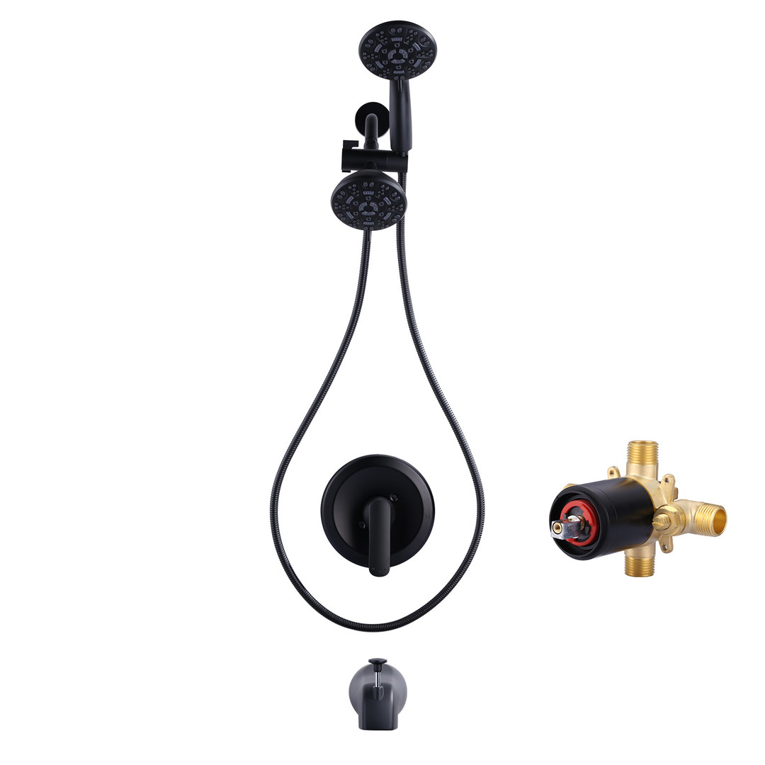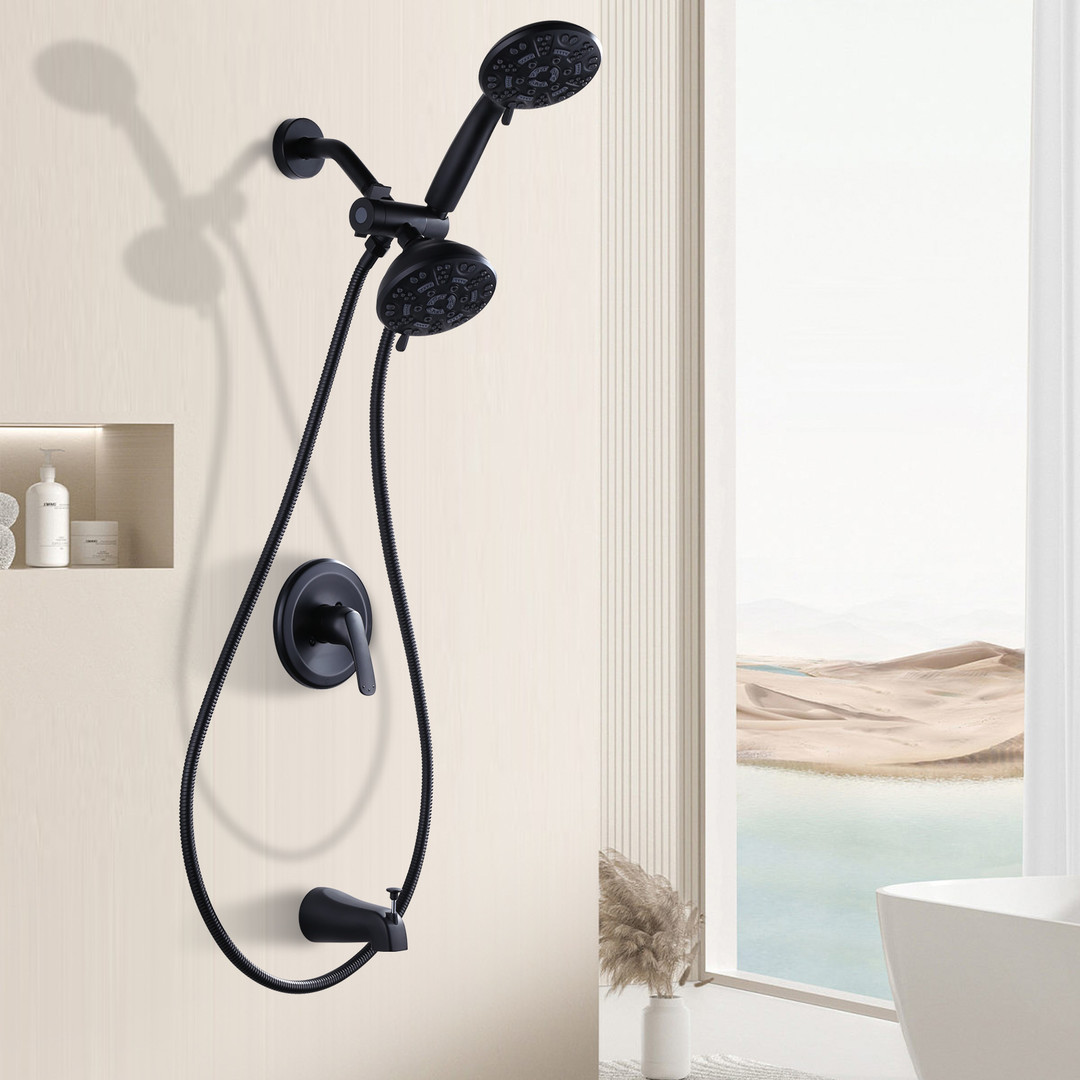 Be the first to review “7-Spray Round Wall-Mount Handheld Fixed and Handheld Shower Head 1.8 GPM with Tub Spout in Matte Black”