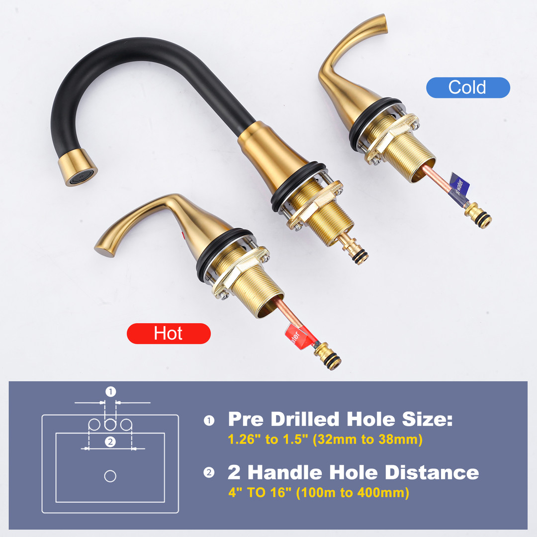 6 reviews for 8 in. Widespread Double Handle Bathroom Faucet in Gold and Black 3-Hole