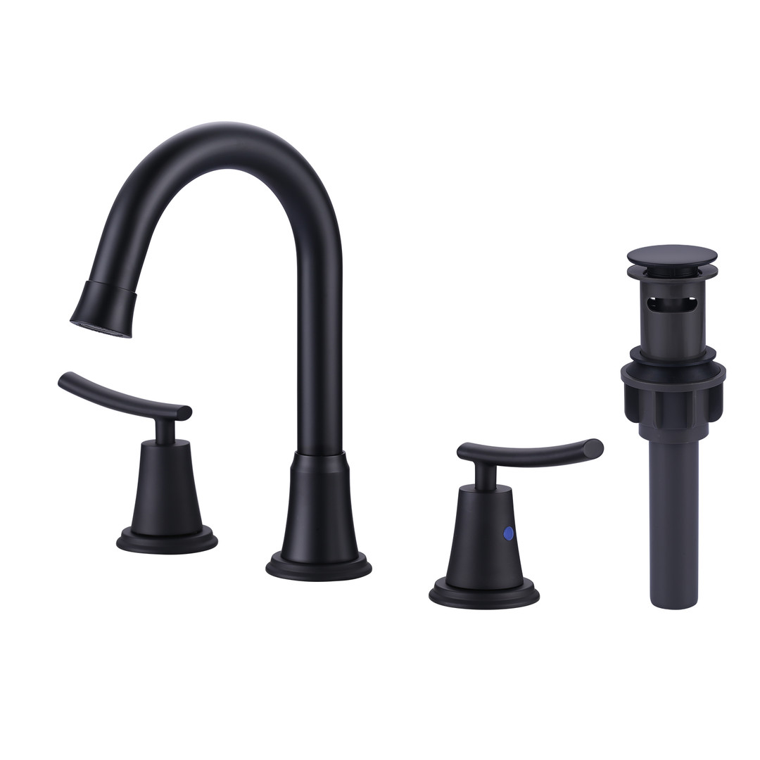 The Aleasha bathroom faucet combines modern style with reliable performance. Its high-arc spout and streamlined dual handles provide precise control of water temperature and flow, while the ergonomic design ensures comfortable use. Built with durable metal, the faucet resists stains, fingerprints, and scratches to stay looking new. Installation is quick with the Y-shape quick connect hose, and the detachable aerator delivers a soft, splash-free stream while saving water. Designed for standard 3-hole sinks, the faucet includes a matching pop-up drain with overflow, offering a complete and convenient solution for your bathroom upgrade.