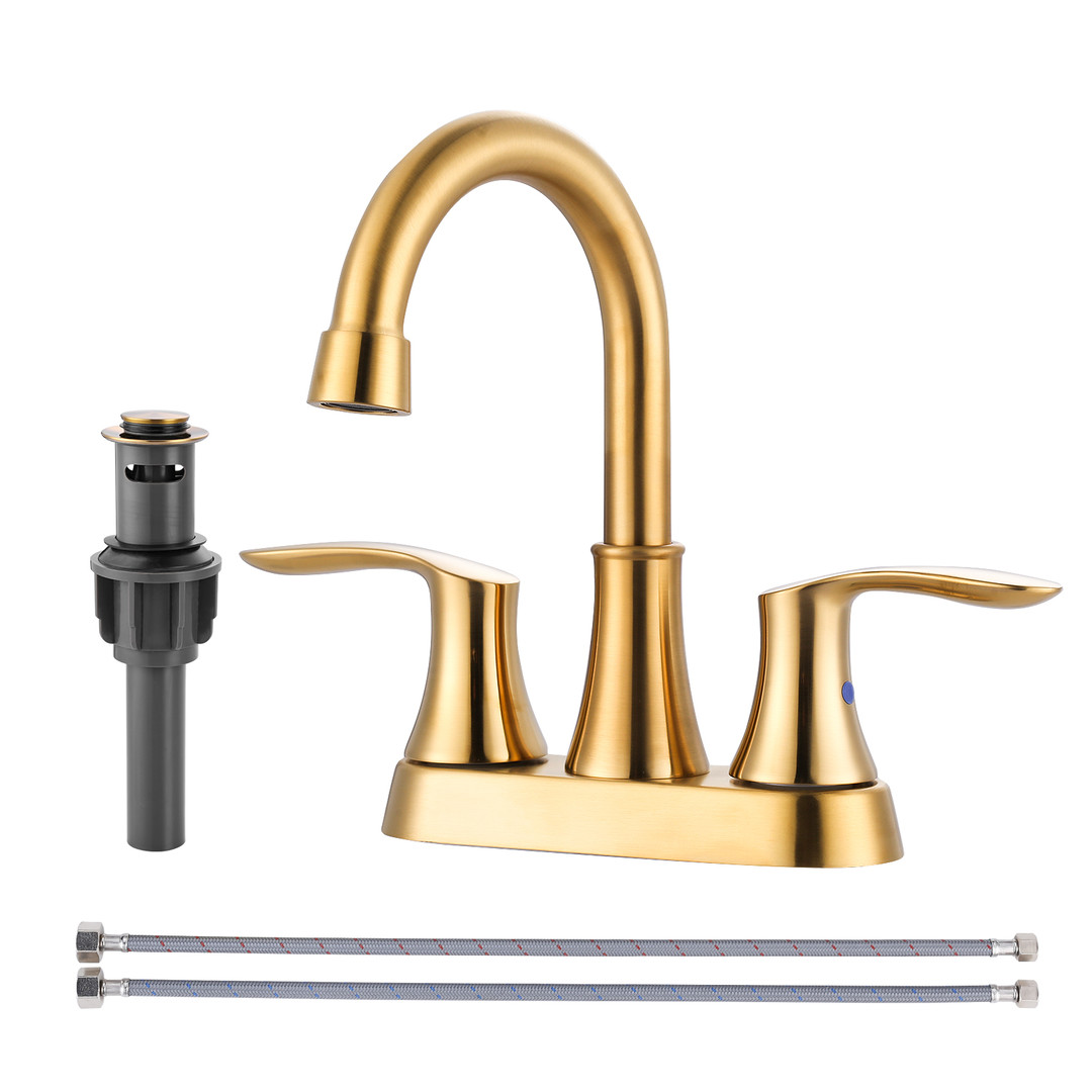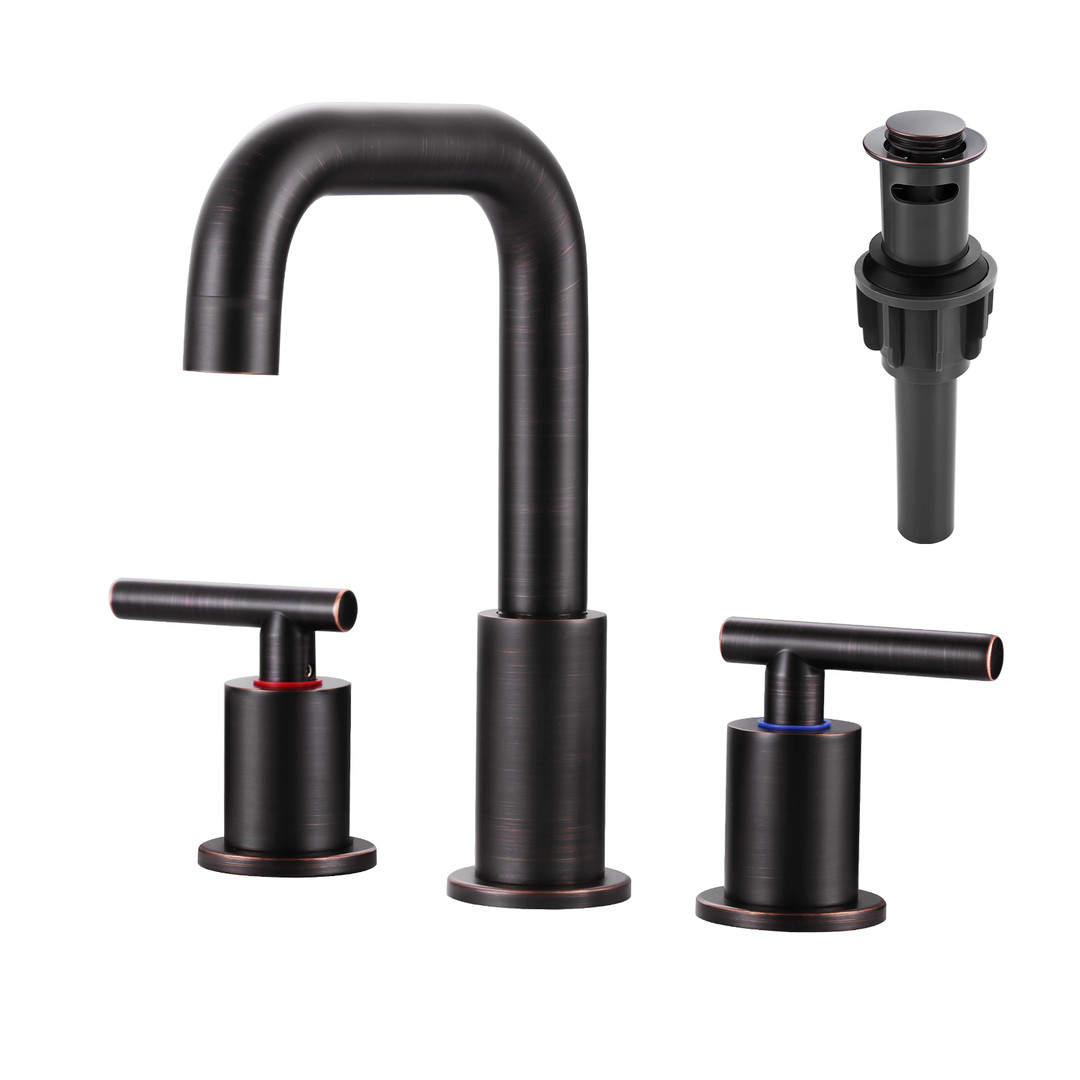 ALEASHA 8 in. widespread double handle high arc bathroom faucet is crafted from stainless steel, ensuring both scratch resistance and rustproof durability. Its elegant design complements any bathroom decor. This faucet is easy to install and the double handles allow precise control of hot and cold water. Utilizing ceramic disc valve, it ensures smooth water flow and long-lasting performance. The ALEASHA faucet not only serves its practical purpose but also adds a touch of elegance to your bathroom.