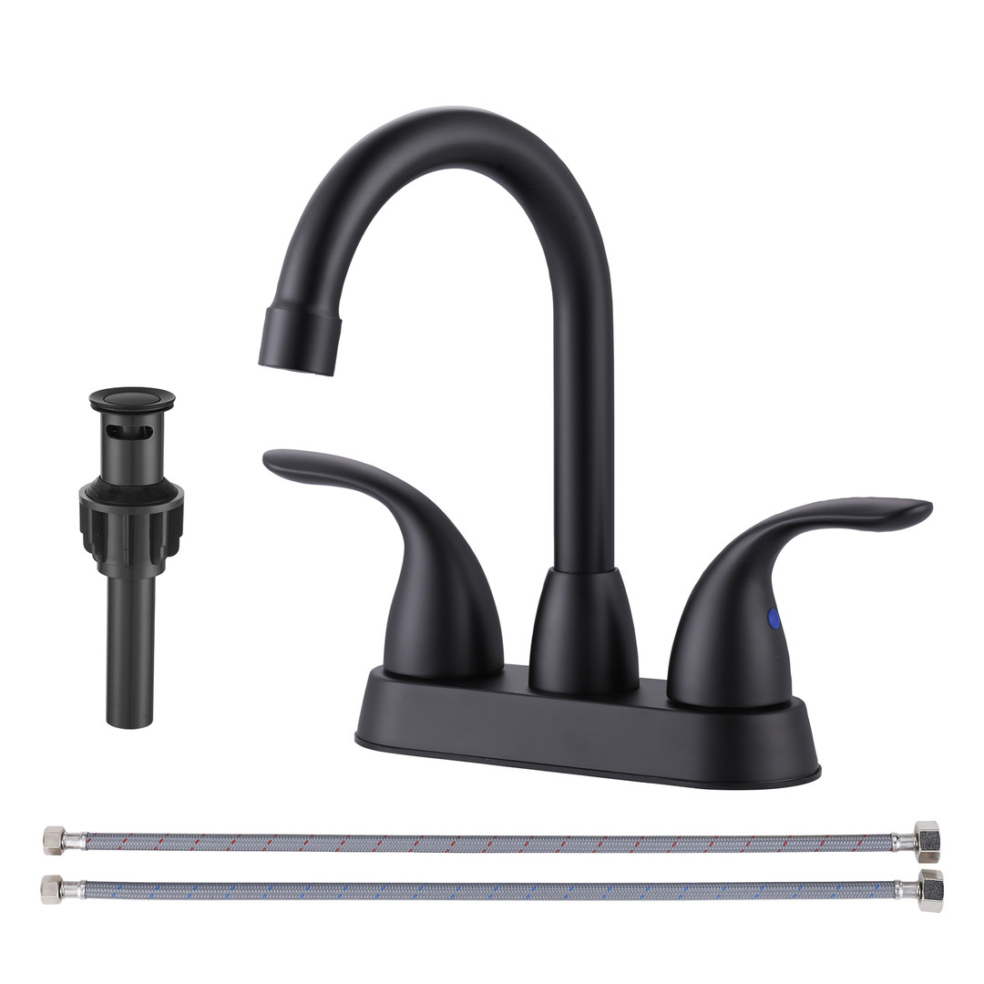 More and more people are seeking both charm and functionality in their bathroom faucet, if you are one of them, our dual-handle bathroom faucet will be perfect for you. Craft from durable zinc alloy, this faucet resists rust and corrosion, ensuring a long-lasting performance. The included pop-up drain with overflow offers easy operation,allowing you to drain water efficiently and quietly when conserving water. With the double handles, achieving precise temperature control is effortless, making your daily tasks more convenient.