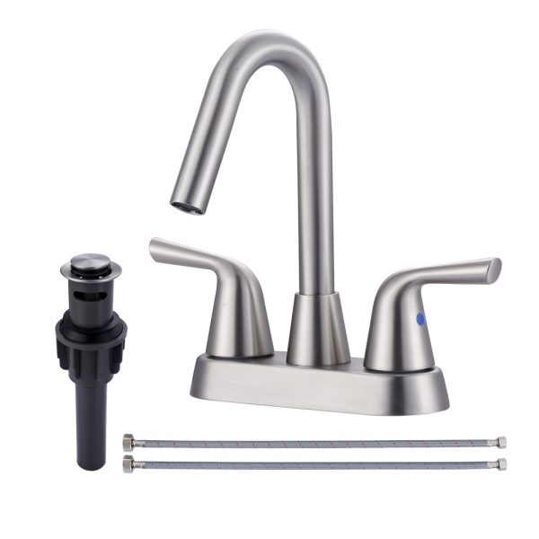 4 in. Centerset Double Handle Gooseneck High Arc Bathroom Faucet in Brushed Nickel