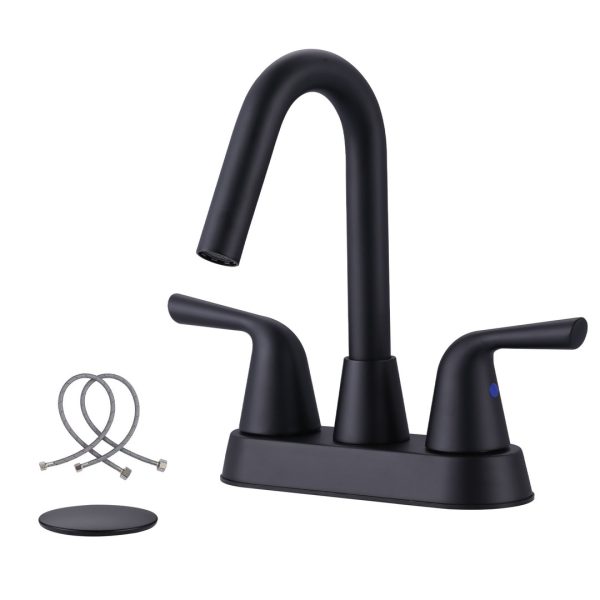 4 in. Centerset Double Handle Gooseneck High Arc Bathroom Faucet in Matte Black