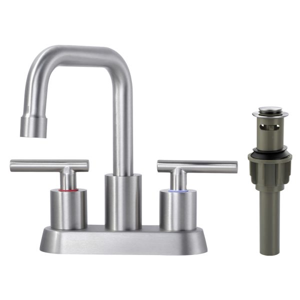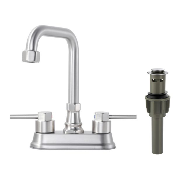 4 in. Centerset Dual Handle Bathroom Faucet with Drain and Swivel Spout in Brushed Nickel