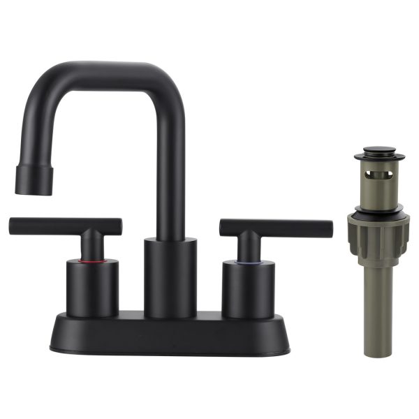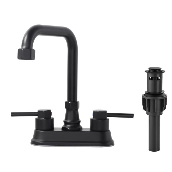 4 in. Centerset Dual Handle Bathroom Faucet with Drain and Swivel Spout in Matte Black