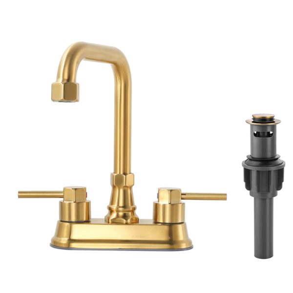 4 in. Centerset Dual Handle Bathroom Faucet with Drain and Swivel Spout in Gold