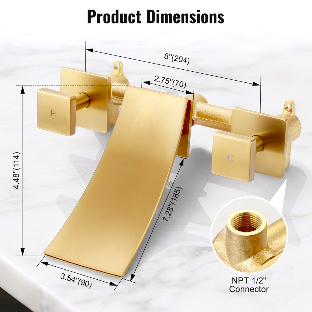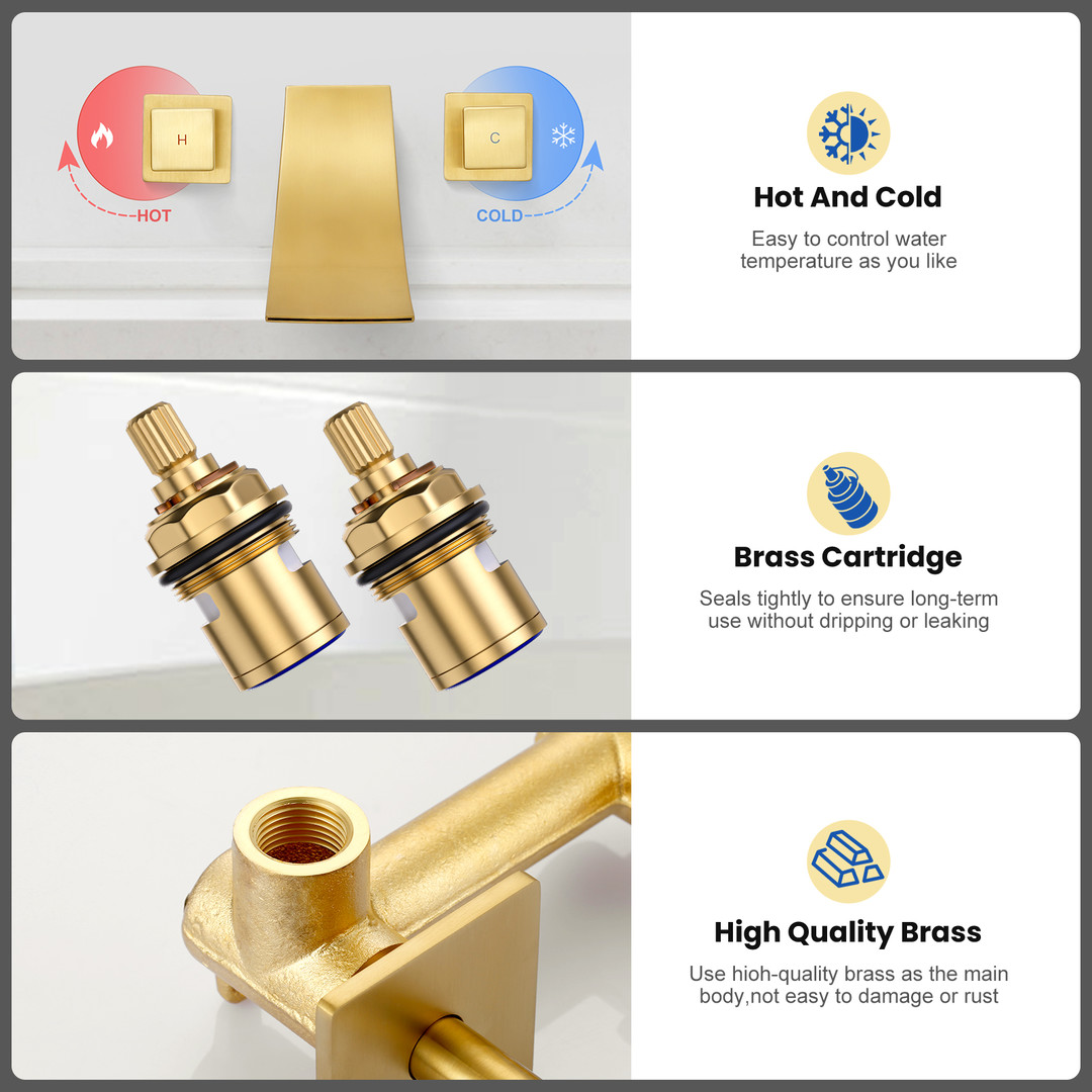 Upgrade your bathroom ambiance with this waterfall basin faucet, adding a touch of luxury. The unique waterfall spout design provides a gentle, wide stream of water. The dual-handle knobs allow precise control, making your experience more comfortable.