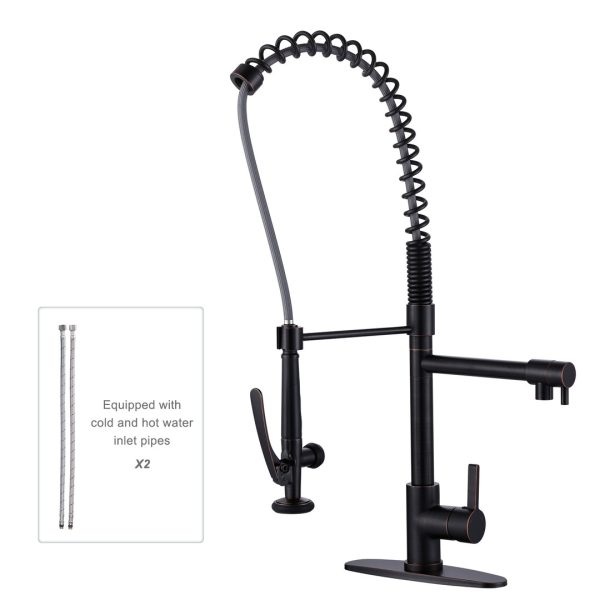 Single Handle Pull Out Sprayer Kitchen Faucet with Deckplate Included in Oil Rubbed Bronze