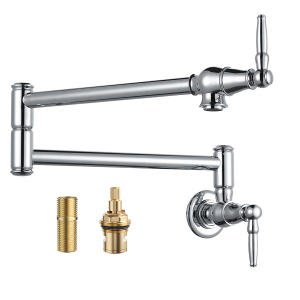 Wall Mounted Brass Pot Filler with Double-Handle Folding Kitchen Faucet in Polished Chrome