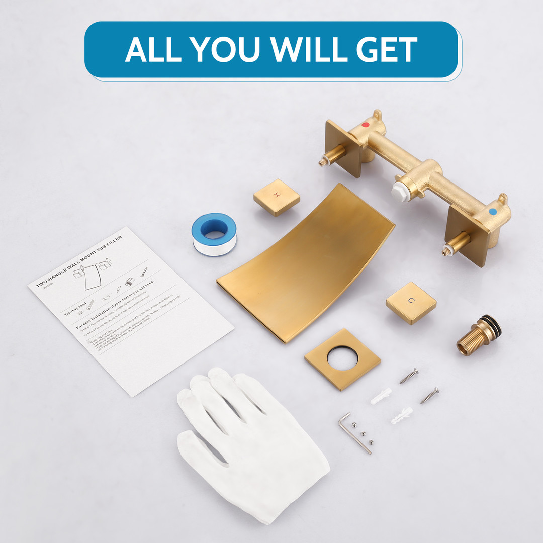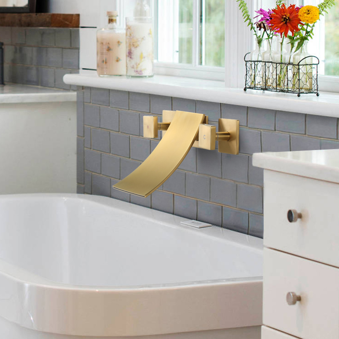 4 reviews for Knob 2-Handle Wall-Mount Waterfall Roman Tub Faucet in Gold