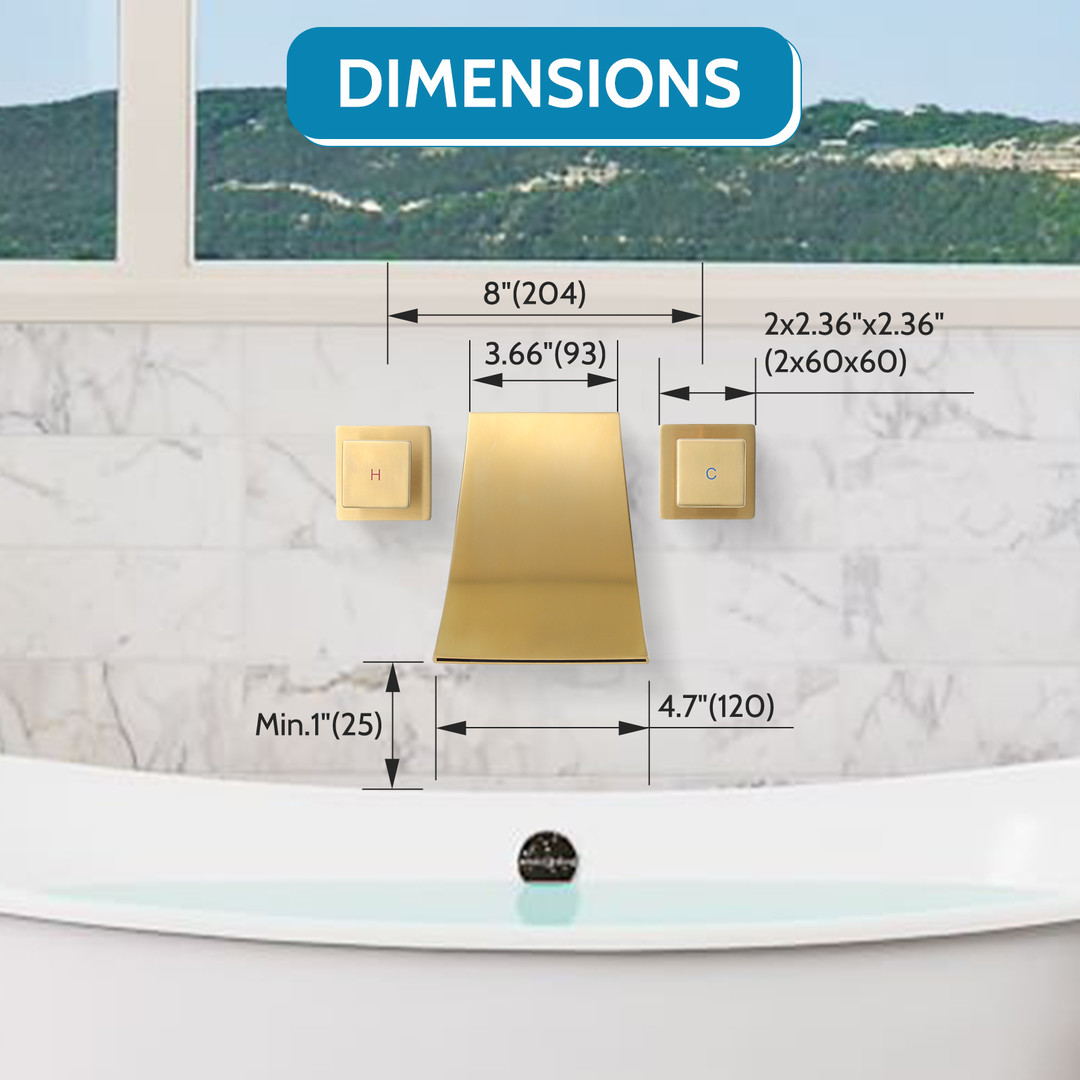 The wall-mounted bathtub faucet is your best choice. This bathtub faucet features a wide, waterfall-style spout, and its high flow design can quickly fill your bathtub so that your bathing experience never has to wait. The wall-mounted installation is neat and aesthetically pleasing, and the low-arc spout effectively reduces splashing. With its dual-knob handle design, concealed installation, and streamlined design, it greatly enhances the beauty of your bathroom.