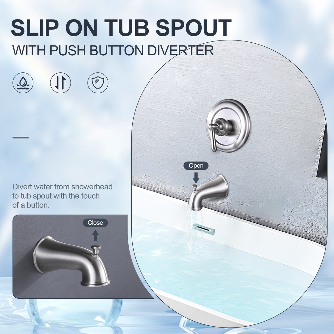 6 reviews for Modern Single Handle 1-Spray Tub and Shower Faucet 1.8 GPM in Brushed Nickel Valve Included