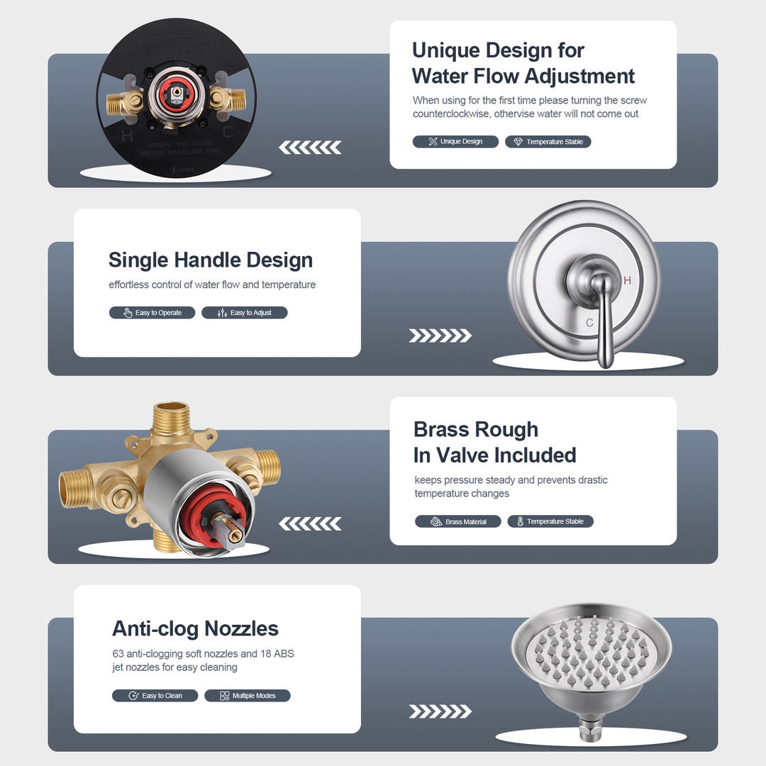 • High quality material: this shower set is made of solid brass, which can resist daily scratches, corrosion, and discoloration in damp shower rooms