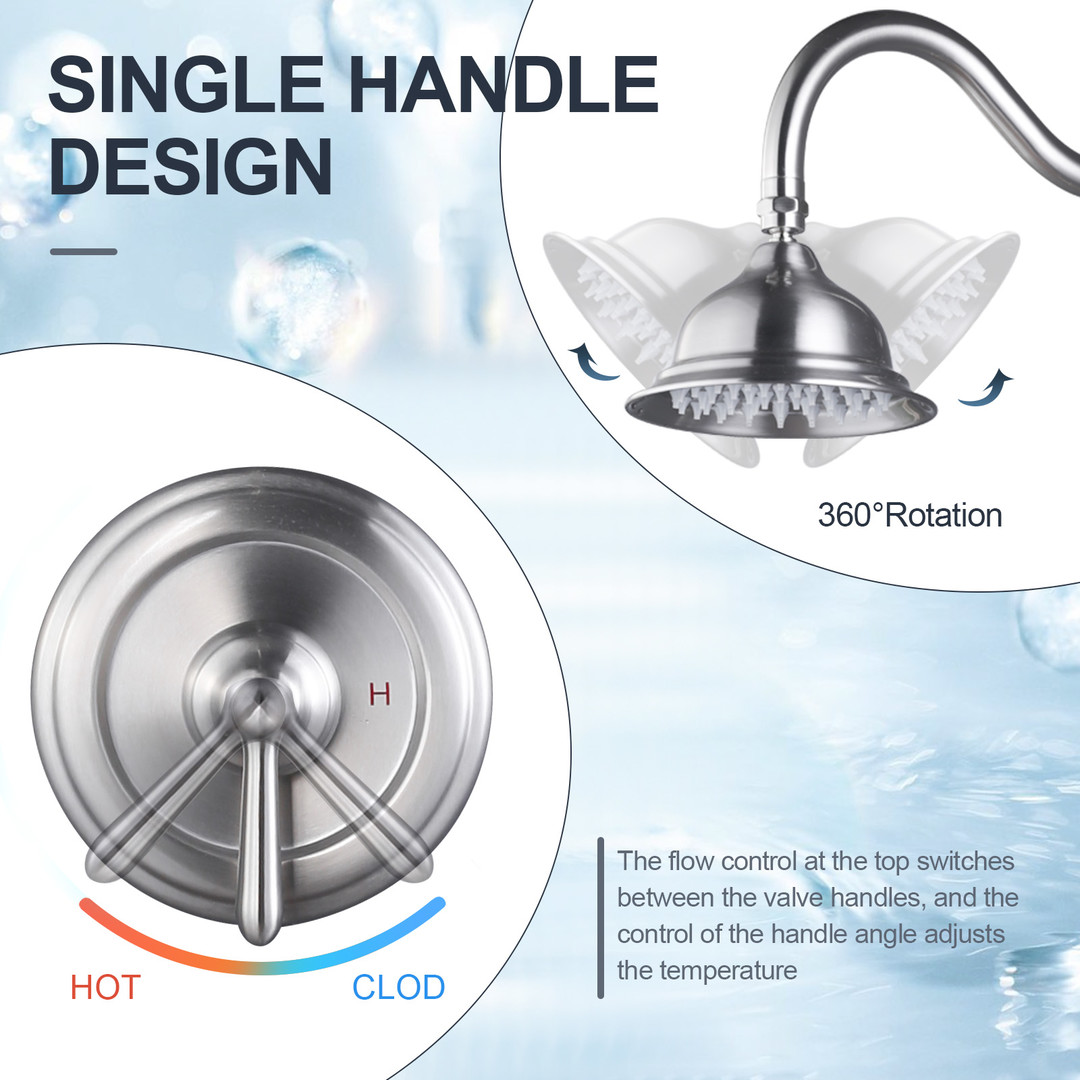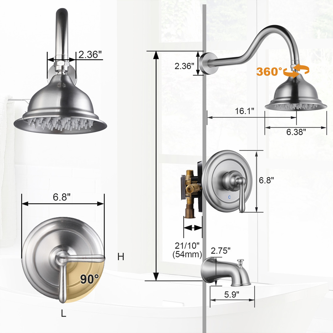 • Rainshower head: the 6.38 in. high-pressure shower head can rotate 360 providing you with a comfortable shower experience