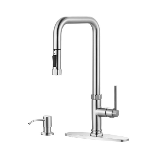 Single-Handle Pull Down Sprayer Kitchen Faucet with Pull Out Spray Wand and Soap Dispenser in Brushed Nickel
