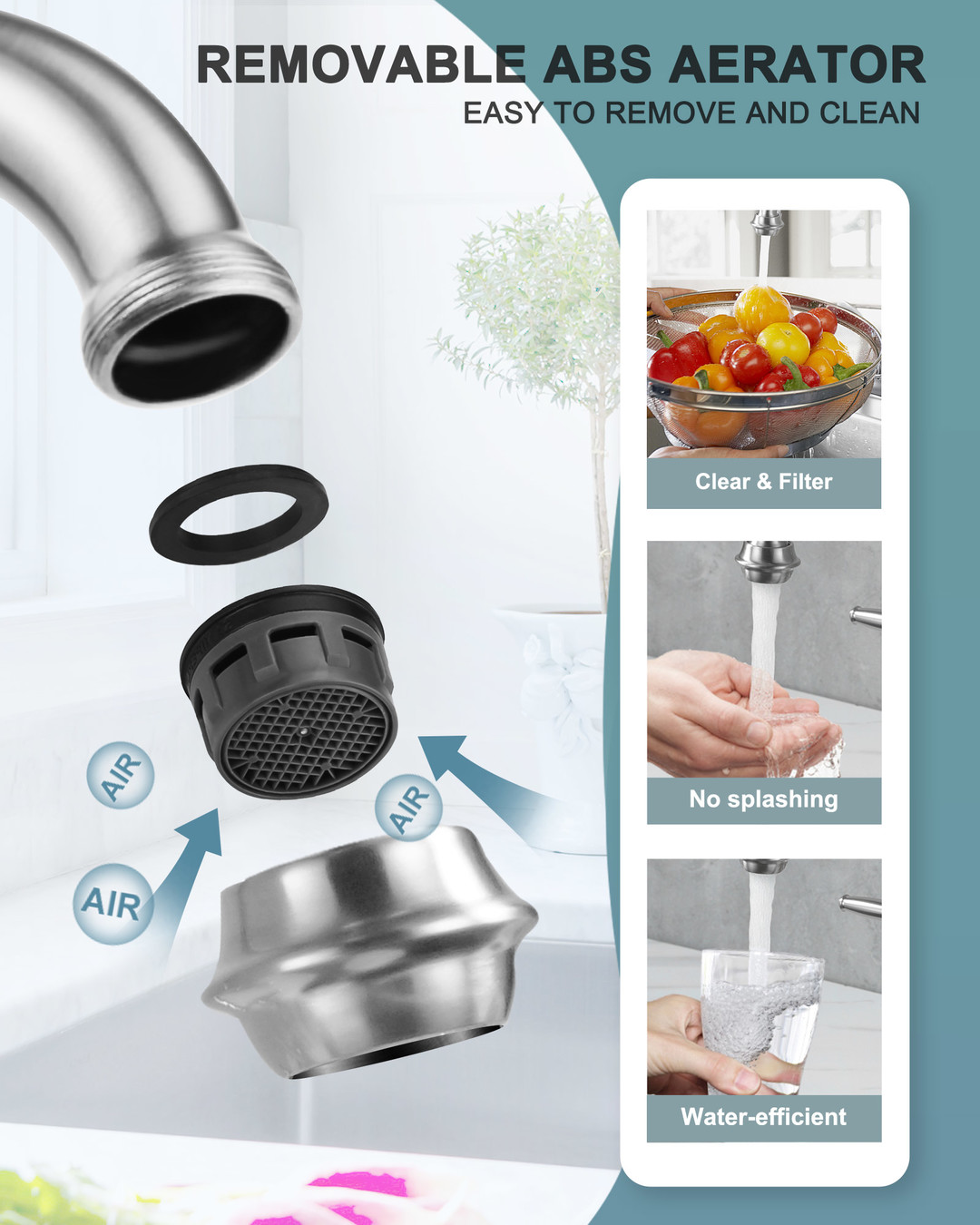 • Faucet body is made of industrial-grade brass, which is corrosion-resistant, fingerprint-resistant, and resistant to hard water scale