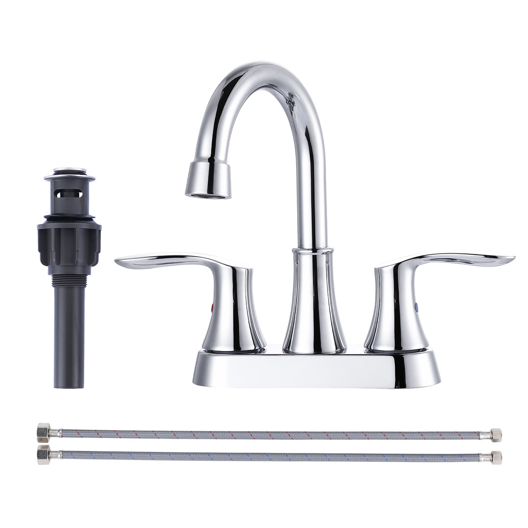 ?The 4 in. centerset double-handle bathroom faucet offers a fresh and elegant update to your bathroom. Its high-arc design not only enhances visual appeal but also provides ample space for comfortable use. The smooth finish contributes to its sophisticated look, making it a versatile choice for various bathroom styles. Equipped with dual handles, the faucet allows for precise control over both water flow and temperature, ensuring a customized and comfortable experience.
