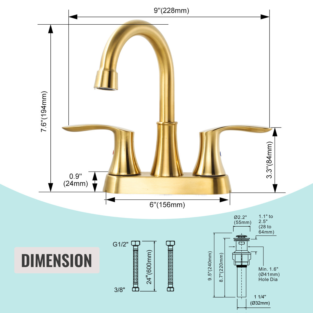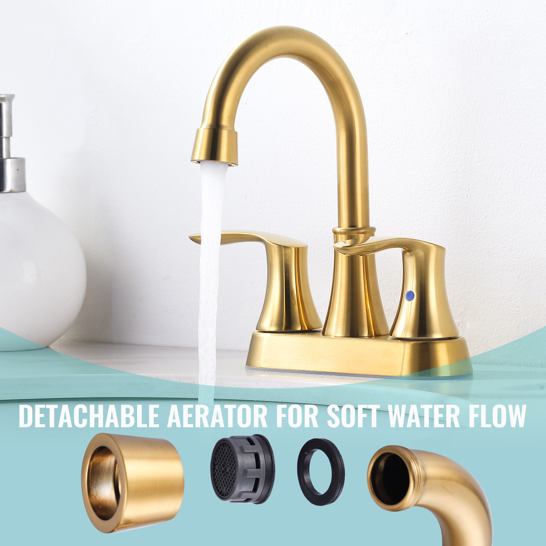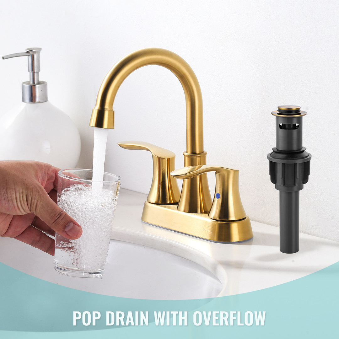 ?The 4 in. centerset double-handle bathroom faucet offers a fresh and elegant update to your bathroom. Its high-arc design not only enhances visual appeal but also provides ample space for comfortable use. The smooth finish contributes to its sophisticated look, making it a versatile choice for various bathroom styles. Equipped with dual handles, the faucet allows for precise control over both water flow and temperature, ensuring a customized and comfortable experience.