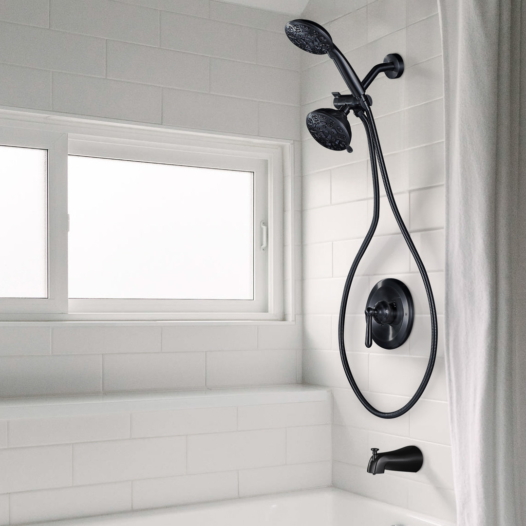 - Retro Single-Handle 7-Spray Tub and Shower Faucet 1.8 GPM in Matte Black (Valve Included)