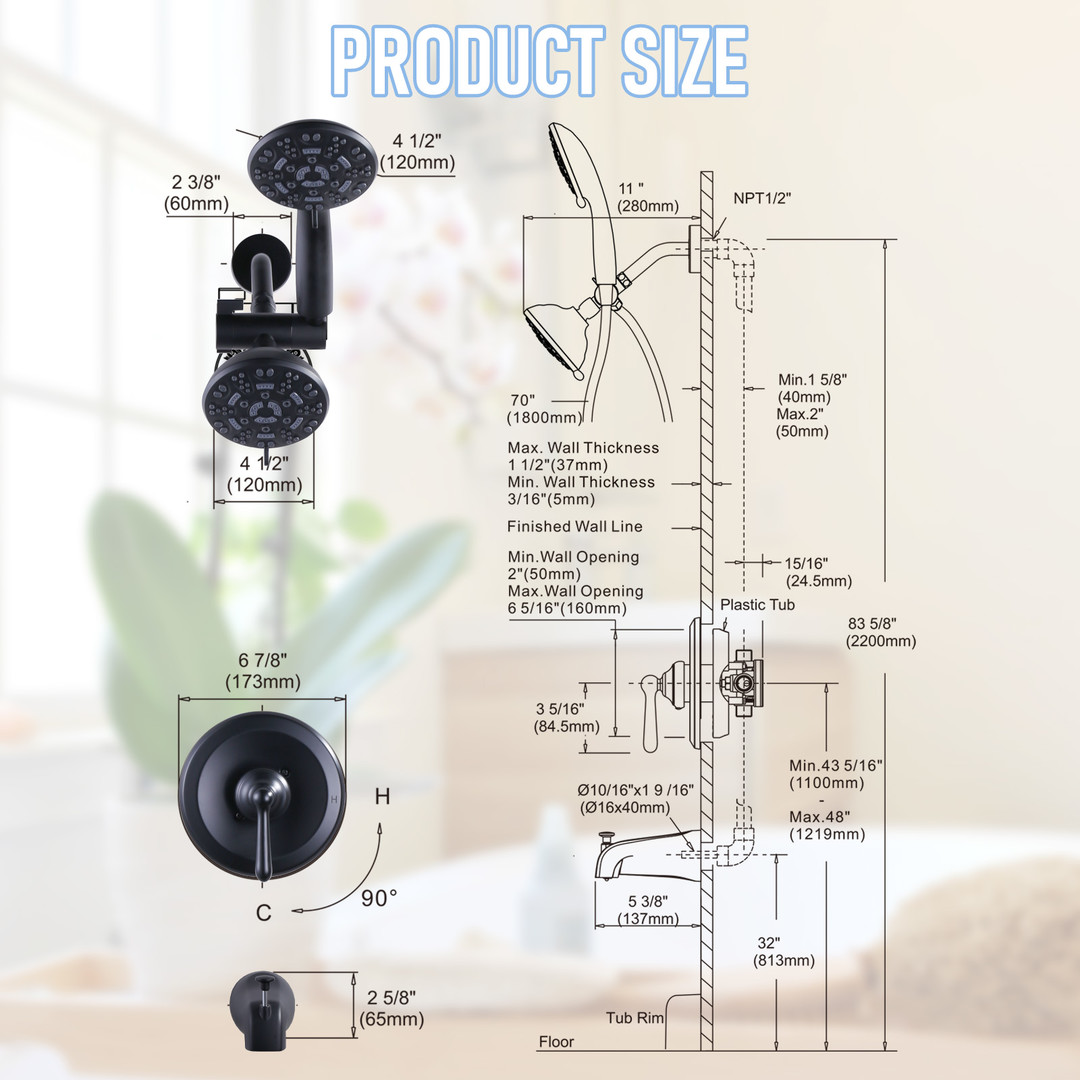 The combination of a wall-mounted rain shower and handheld showerhead offers a comprehensive bathing experience. Integrated with a bathtub spout function, it effortlessly meets diverse bathing needs. Crafted with exquisite craftsmanship and an elegant appearance, each shower becomes a moment of enjoyment and relaxation.