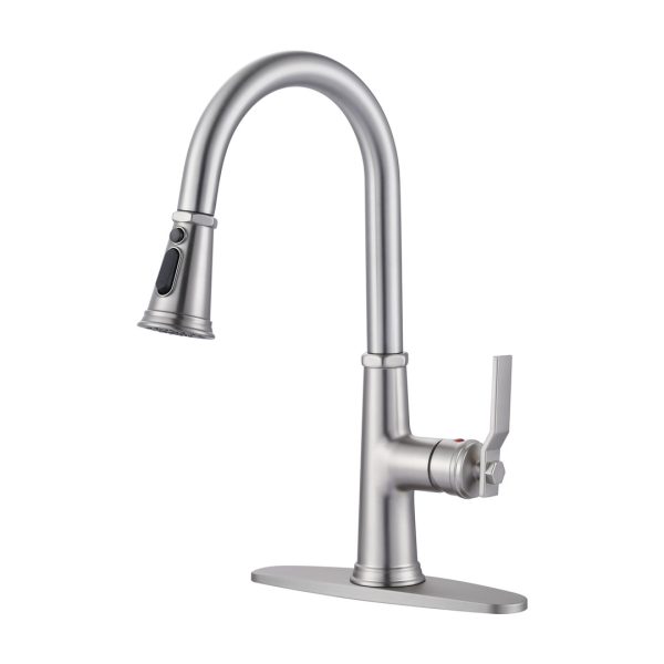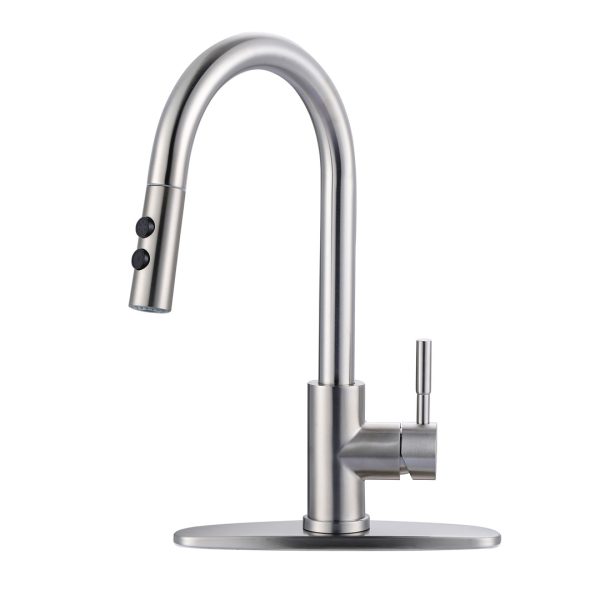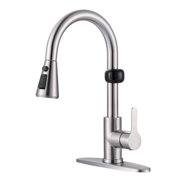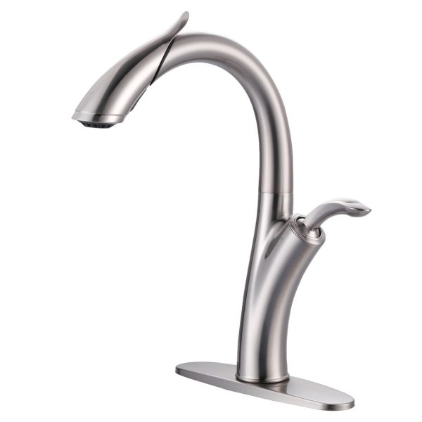 16.1 in. H Single Handle Pull Out Sprayer Kitchen Faucet With 2-Mode Sprayer and Spout Swivel in Brushed Nickel