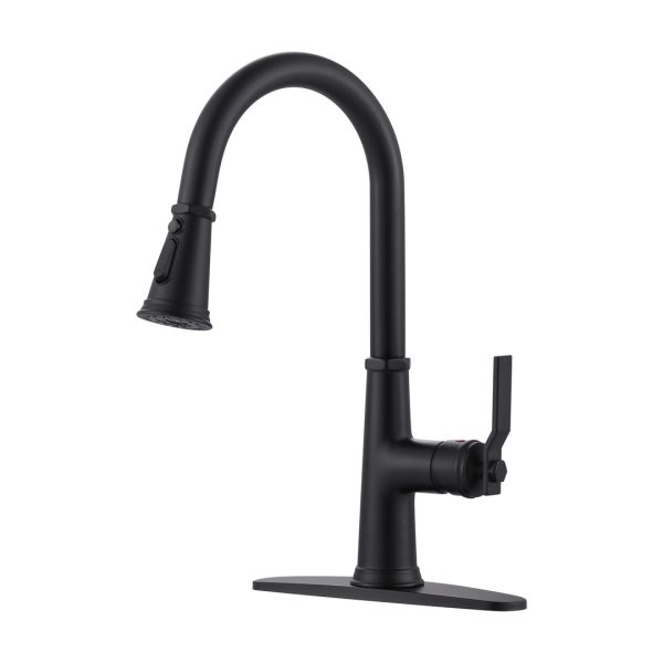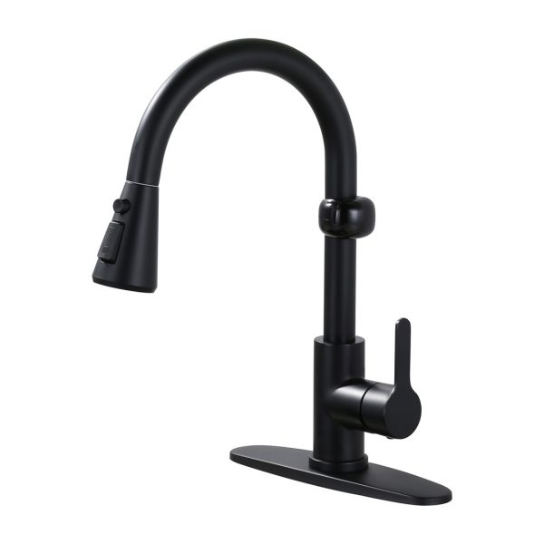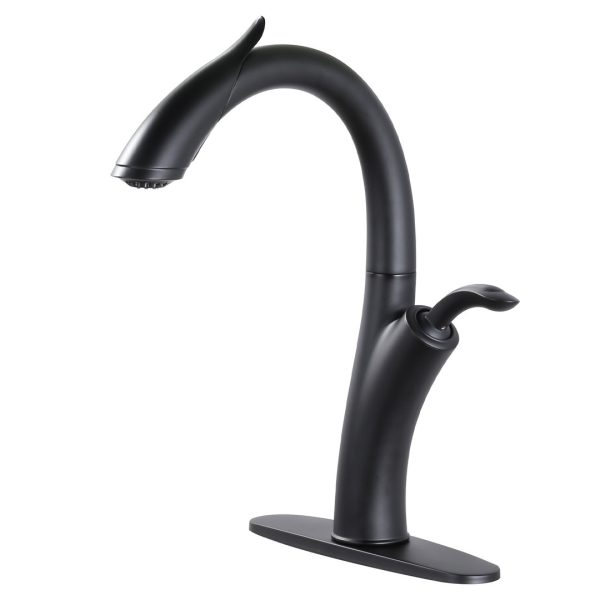 16.1 in. H Single Handle Pull Out Sprayer Kitchen Faucet With 2-Mode Sprayer and Spout Swivel in Matte Black