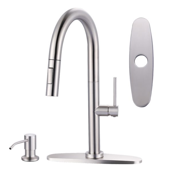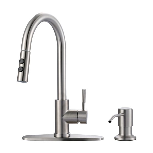 15.6 in Single Handle swivel Pull Down Sprayer Kitchen Faucet with Soap Dispenser in Brushed Nickel