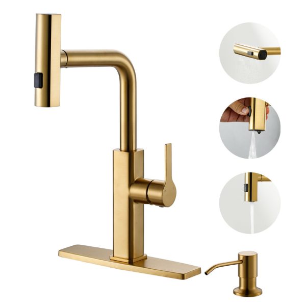 14.8 in. 3-Mode Stainless Steel Single Handle Pull Down Sprayer Kitchen Faucet with Swivel Spout in Brushed Gold