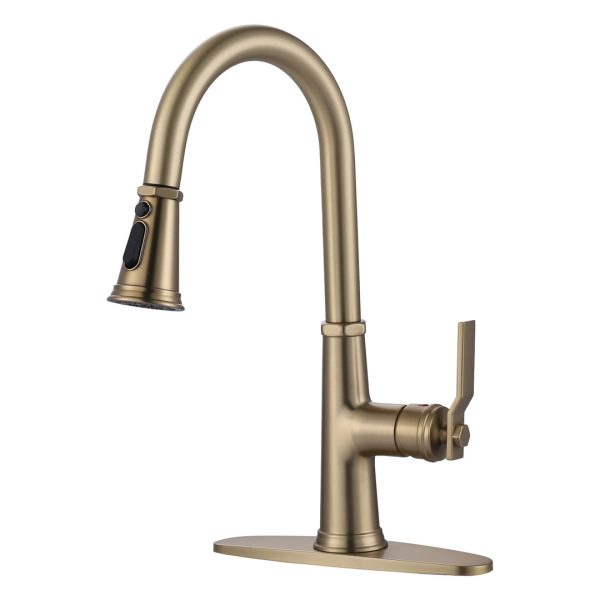 16.7 in. H Single Handle Pull Down Sprayer Kitchen Faucet in Brushed Gold