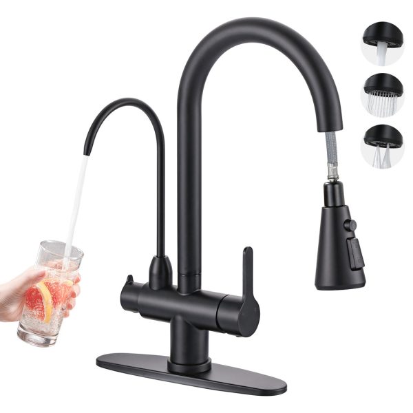 16.7 inch 2 In 1 Stainless Steel Pull Down Sprayer Kitchen Faucet with Swivel Drinking Water Faucet in Matte Black