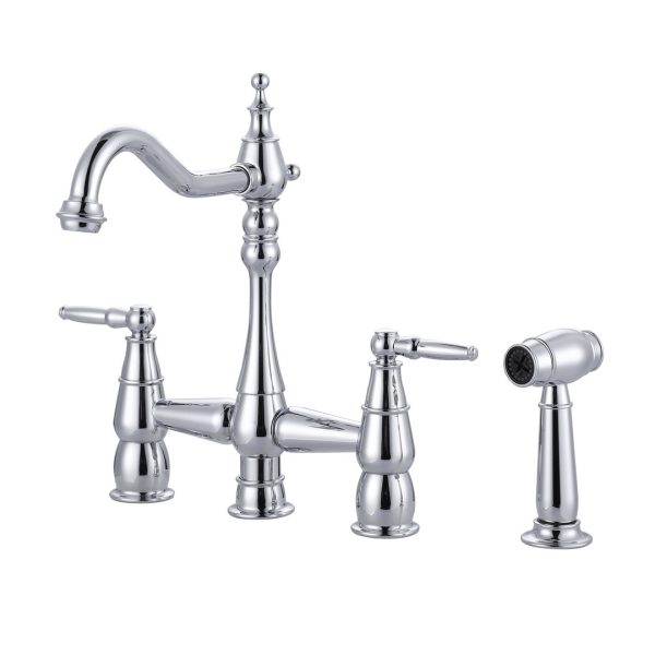 Double Handle Bridge Kitchen Faucet with Side Sprayer in Polished Chrome