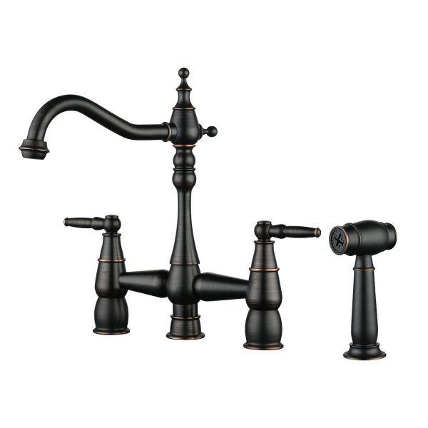 Double Handle Bridge Kitchen Faucet with Side Sprayer in Oil Rubbed Bronze