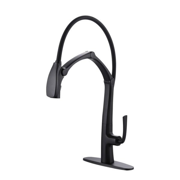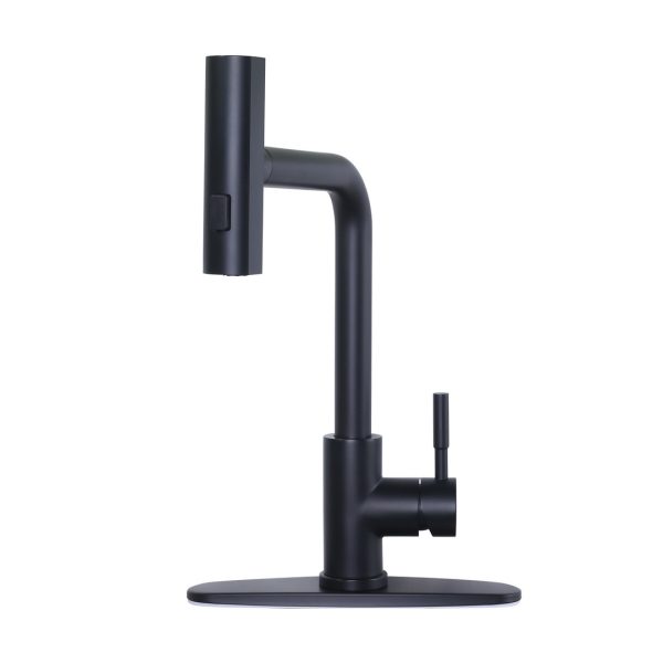 Single Handle Pull Out Sprayer Kitchen Faucet with Deckplate in Matte Black