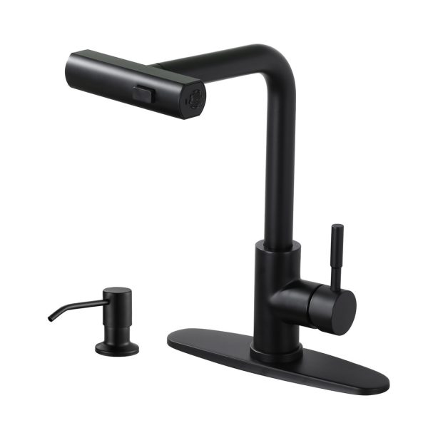 3 Modes Single Handle Pull Down Sprayer Kitchen Faucet with Soap Dispenser in Matte Black